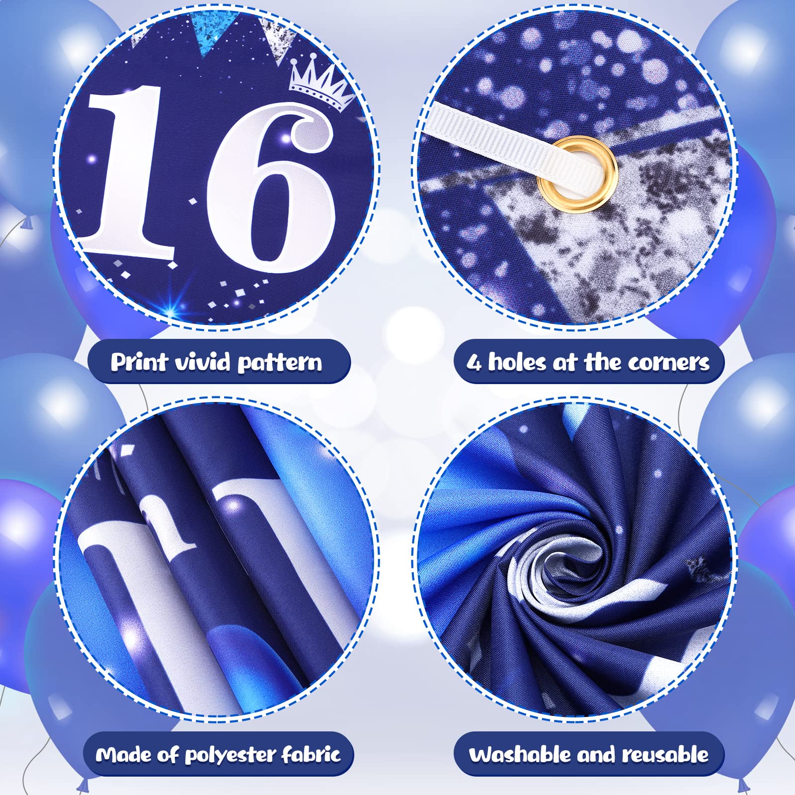 Blue 16Th Birthday Decorations For Boys Girls, Navy Blue Silver Happy 16Th Birthday Banner And 16Th Birthday Balloons For 16Th Birthday Anniversary Party Supplies, Sixteen Year Old Party Decorations