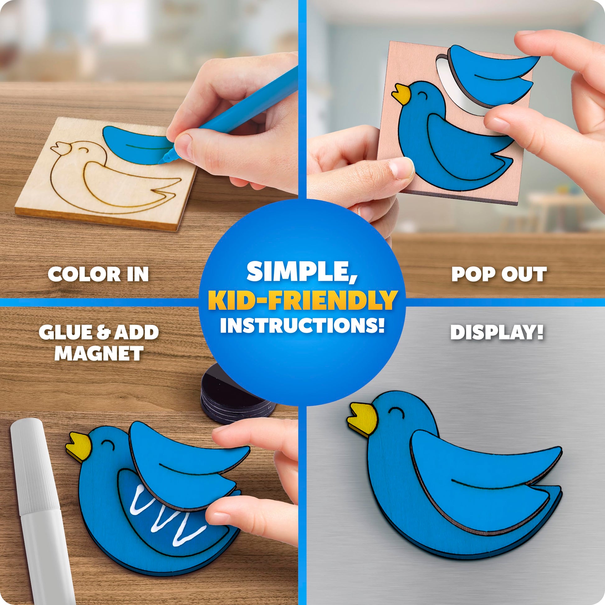 MAKE & DECORATE 15 MAGNETS - This super fun craft set has everything kids need to color and assemble 15 nature-themed, 3D wooden magnets! Kids can use the 8 included markers to color 15 woodcuts any way they like to express their creativity! | DISPLAY ON ANY MAGNETIC SURFACE - After they get creative decorating and coloring their woodcuts, kids can simply attach a self-adhering magnet and display their custom designs on the fridge, locker, or any magnetic surface. | ALL-INCLUSIVE CRAFT KIT - This fun arts and crafts kit includes everything kids need: 15 woodcuts, 15 adhesive-backed magnets, glue, and 8 colorful markers (red, brown, blue, green, orange, pink, purple & yellow), to let their imaginations run wild. | SIMPLE, KID-FRIENDLY INSTRUCTIONS - The easy-to-follow instructions make it simple for kids to dive right into decorating and creating their magnets. With just a few steps from start to finish, they can focus on their creativity without frustration. | AWARD-WINNING PRODUCTS - Blue Marble, winner of the Toy Associations prestigious Toy of the Year Award, proudly develops products that foster education, imagination, and creativity, with a U.S. support team to ensure a stellar experience!