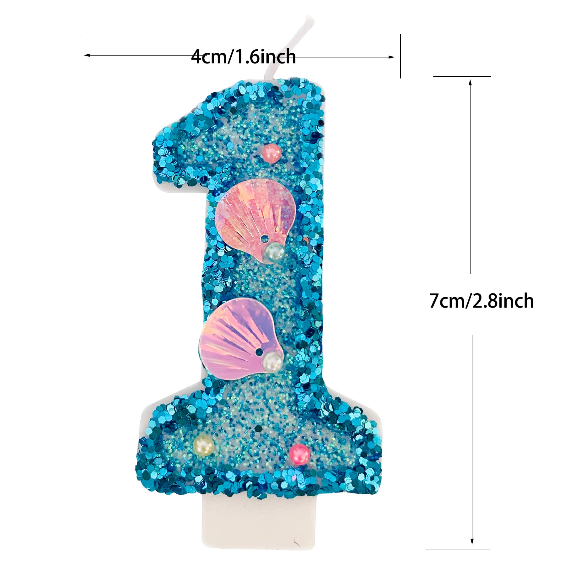 Blue Number Candle,Shell Sequins Number Candles for Birthday Cakes Mermaid Themed Party Supplies Number 1 Candle