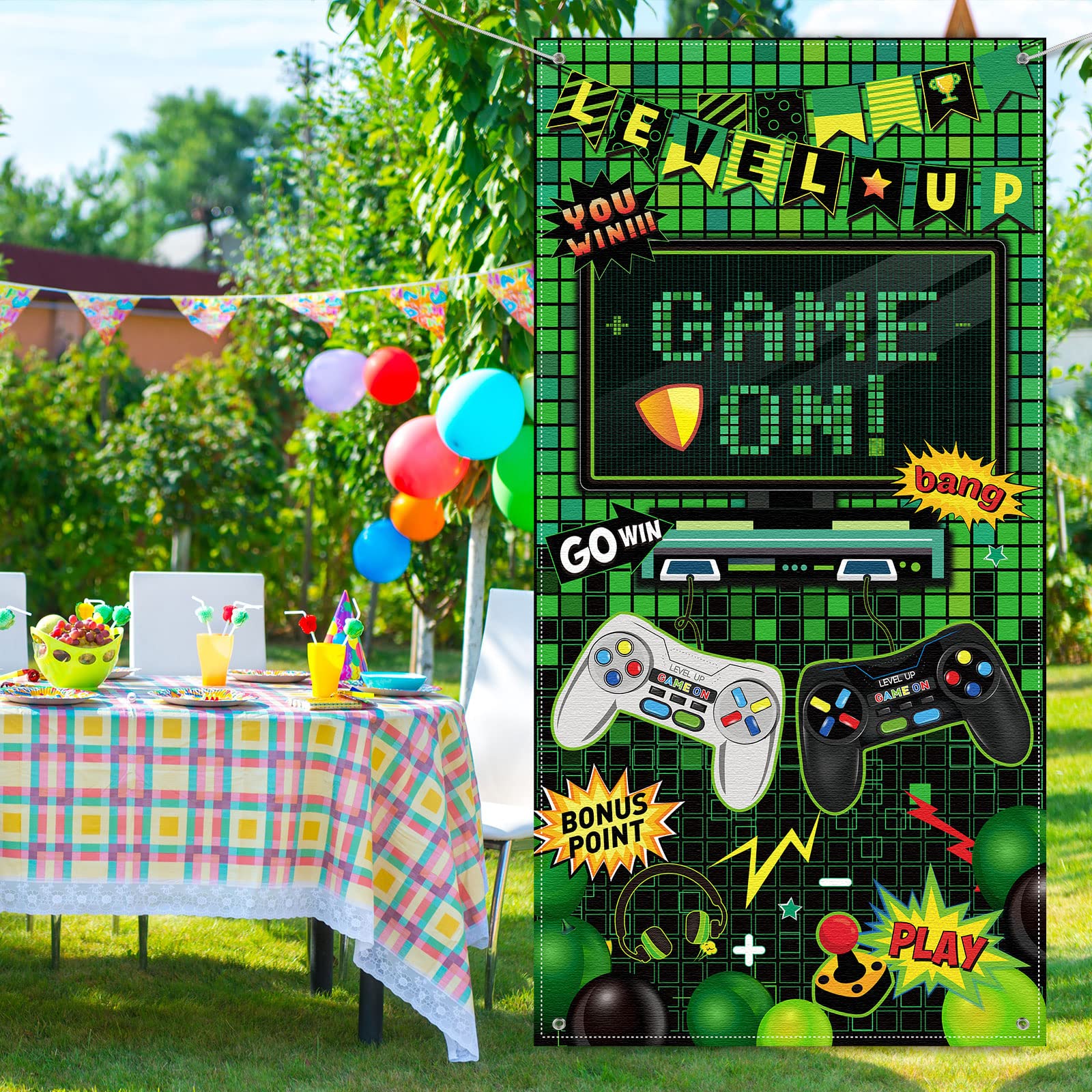 Blulu Video Game Party Decoration Video Gaming Photo Door Backdrop Game On Boys Birthday Photo Banner Gamer Room Decor For Game Fans Video Gamer Party Decoration Supplies (35.5 X 70.9 Inch)