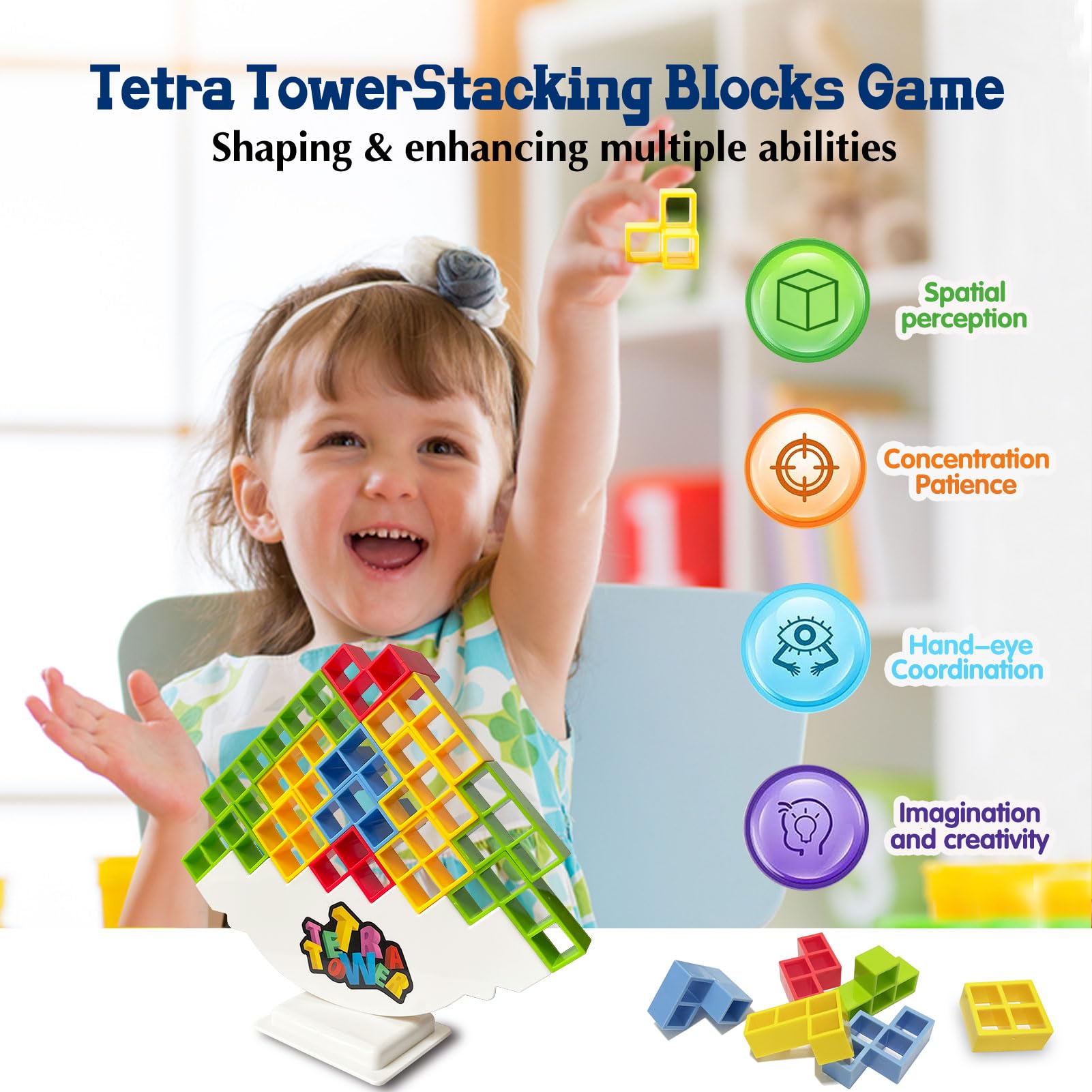 Bnneceu 48Pcs Tetra Tower Stacking Game, Balance And Fun Board Games For Family Games, Parties And Team Building Block Toys