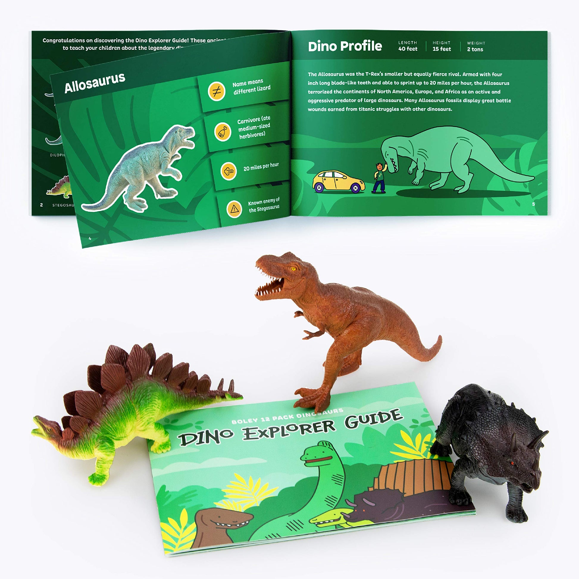 View compareBoley 12 Pack 9-Inch Educational Dinosaur Toys - Kids Realistic Toy Dinosaur Figures For Cool Kids And Toddler Education! (T-Rex, Triceratops, Velociraptor, And More!)