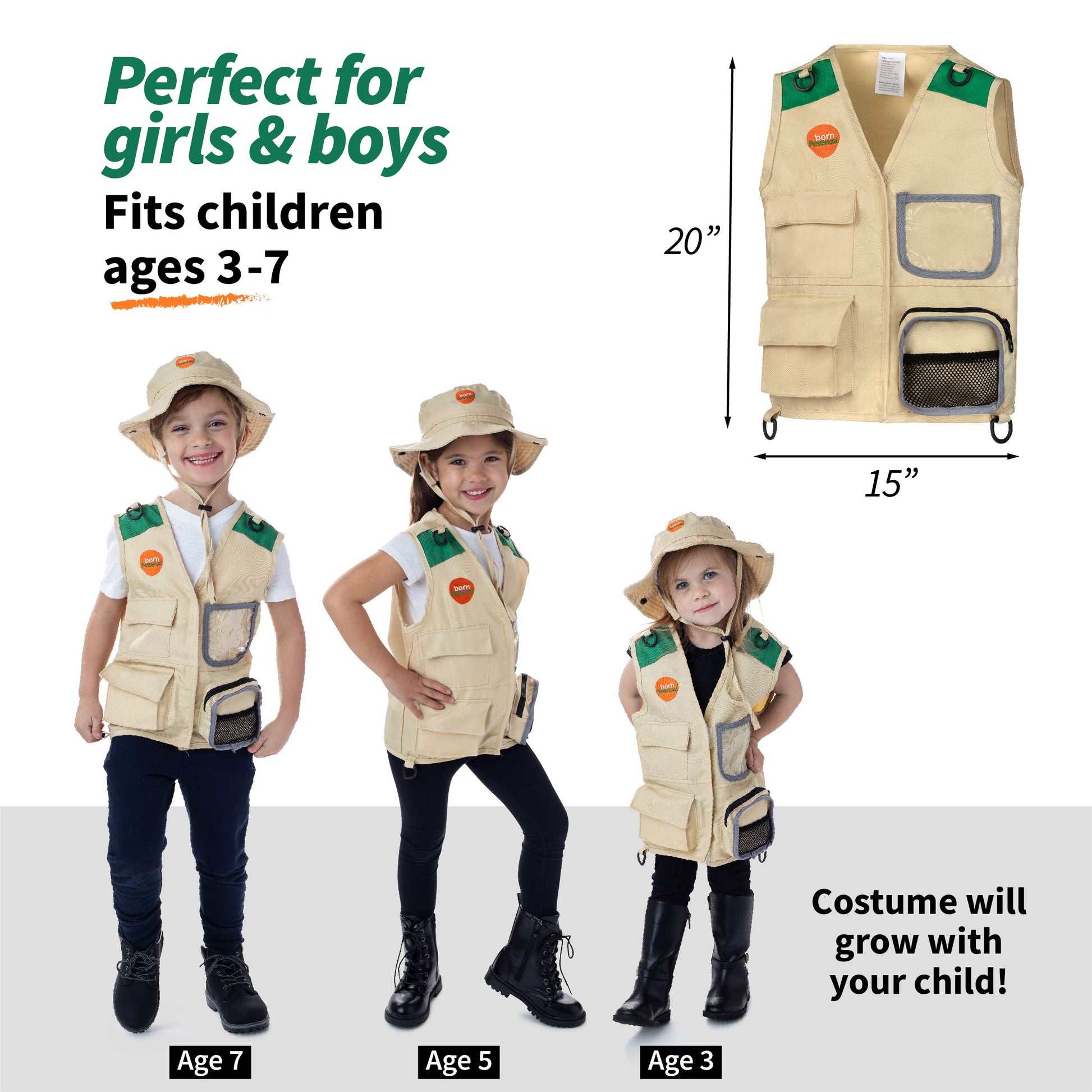Born Toys Premium Outdoor Explorer Kit For Kids For Dress Up & Pretend Play Costumes For Boys & Girls 3-7 W/ Washable Kids Safari Vest Safari Hat And Binoculars- Outdoor Explorer Set & Scavenger Hunt