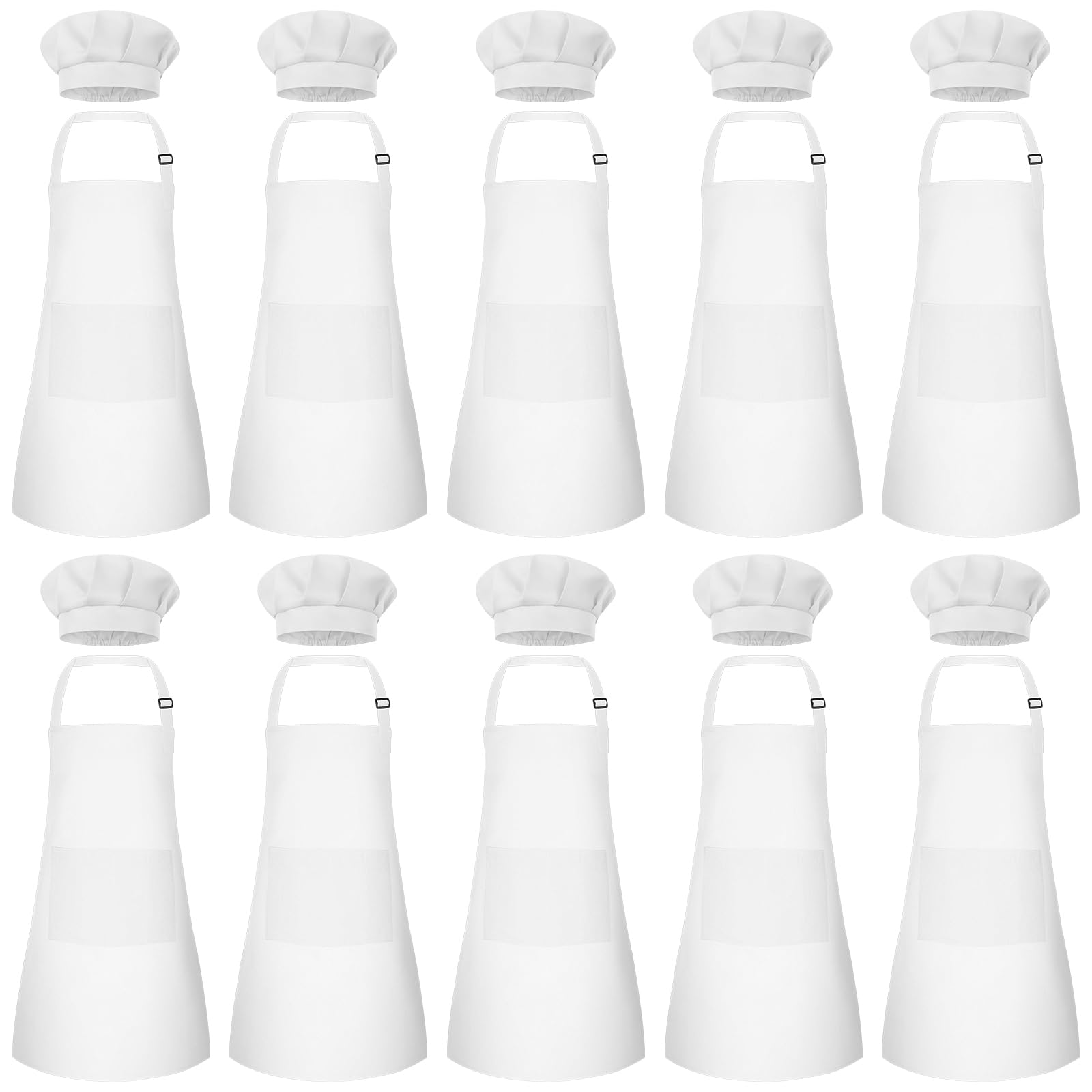 Bouiexye 10 Set Kids Apron and Chef Hat Set Children Apron Adjustable with 2 Pockets Children Chef Painting for Cooking Baking P