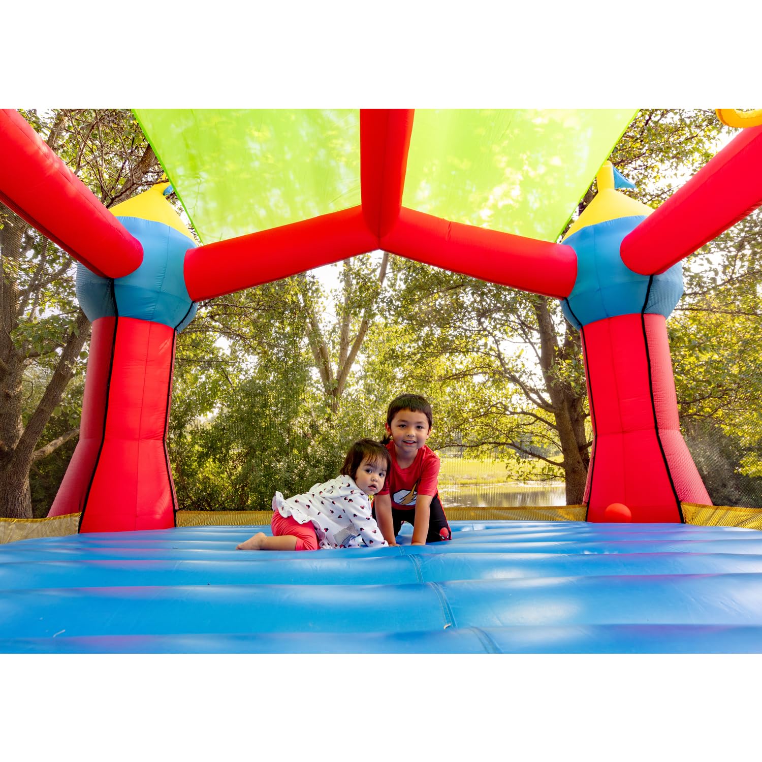 Bounceland Inflatable Party Castle Bounce House Bouncer, 16 ft L x 13 ft W x 10.3 ft H, Basketball Hoop, Removable Sun Roof, UL