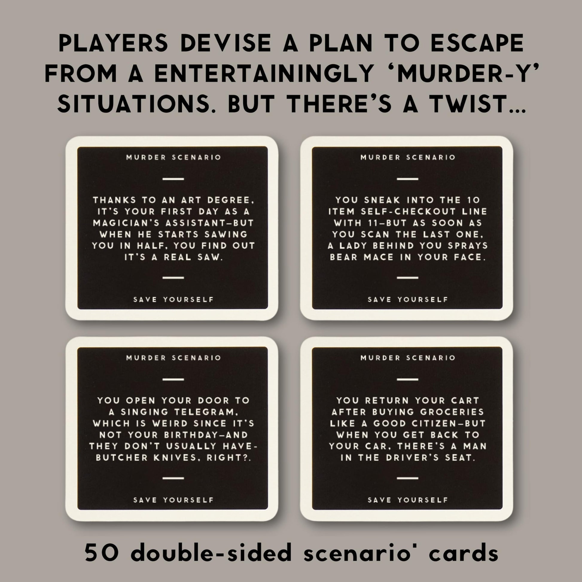 Brass Monkey Not Today, Murder - Social Party Game with 300+ Game Card Prompts for Escaping Murder Scenarios