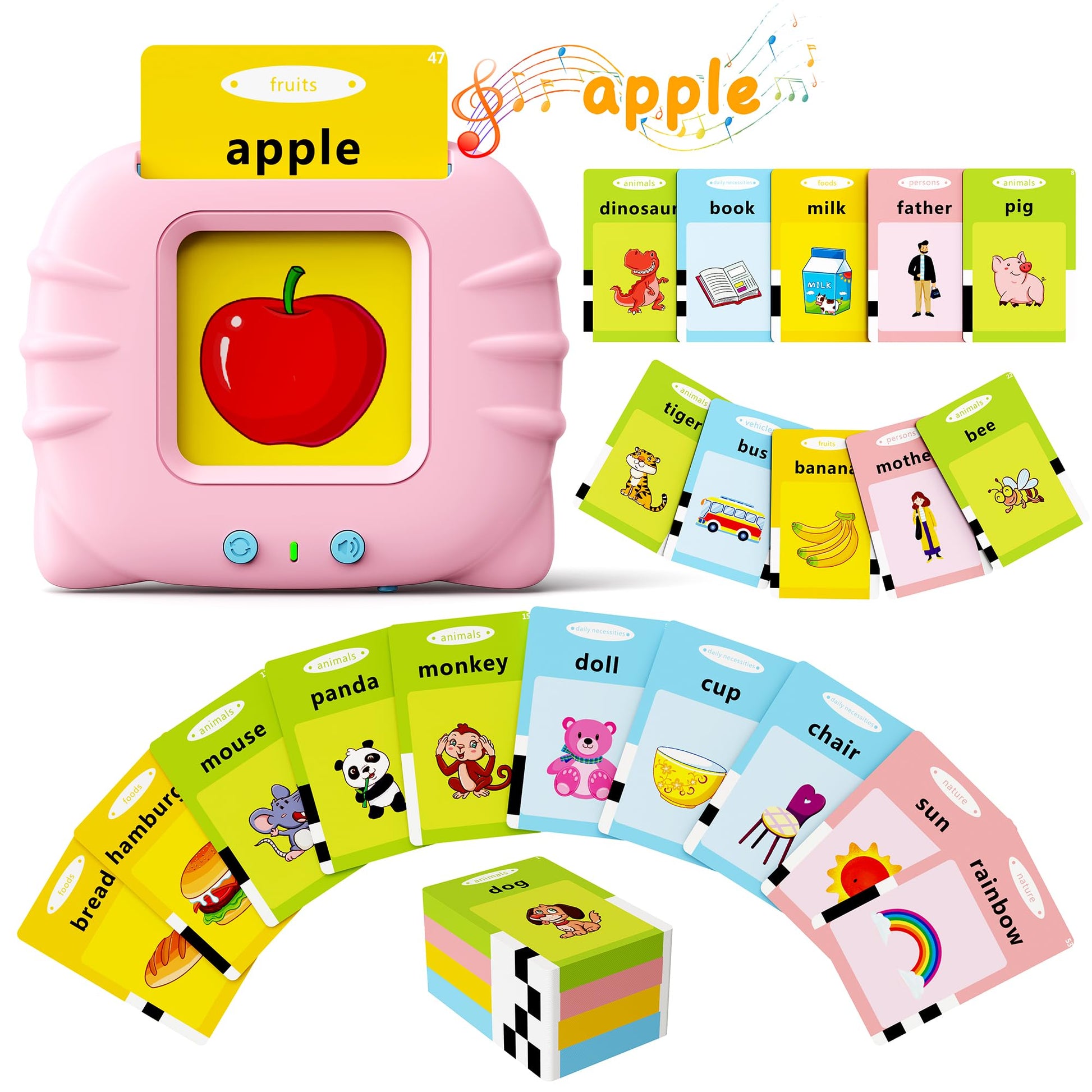 Bravokids Talking Flash Cards Toddler Toys, Preschool Educational Sensory Toys With 112 Double Sided Cards For 1 2 3 4 5 6 Year Old Boys And Girls, Interactive Learning Toys Gifts For Kids, Pink