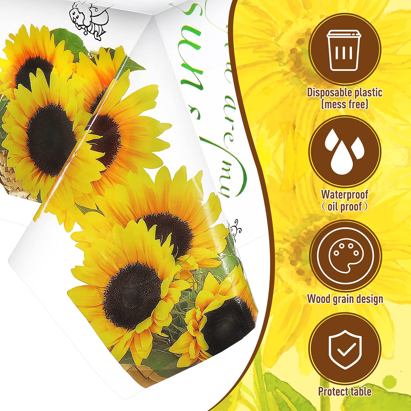 Breling 3 Pieces Sunflower Disposable Table Cover Flower Printed Plastic Birthday Party Tablecloth 43 x 71 Inches Sunflower Them