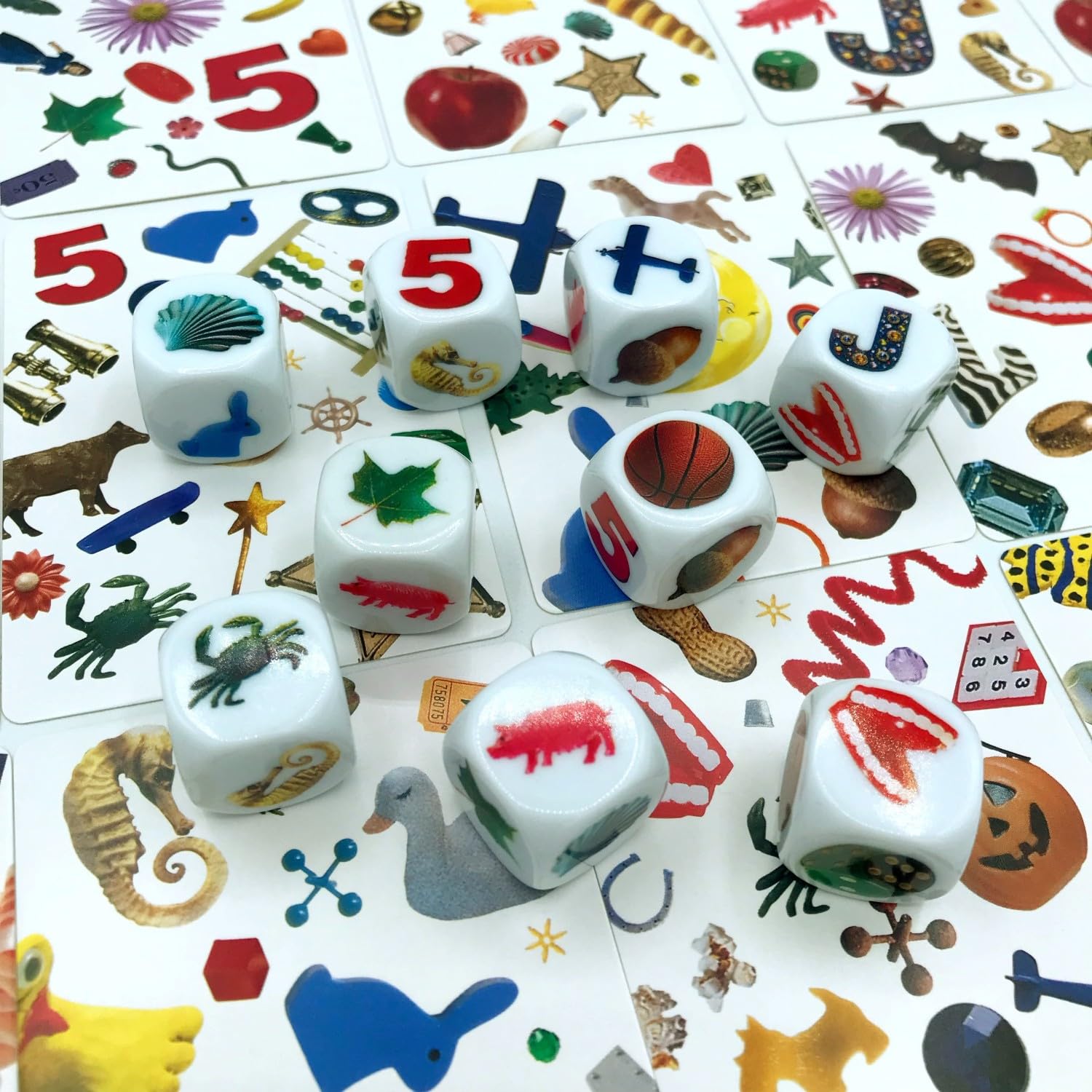 'Roll the dice, find a match, and find it fast! Players roll nine dice with I SPY pictures on each side. They try to find a match on an overturned picture card, which is a minefield of different objects! Be the first to find the most matches and you win. There is also a beginner's game mode and a co-operative game mode for three times the fun. DEVELOPMENTAL: Promotes quick thinking and develops hand/eye coordination with dice gameplayEDUCATIONAL:Build literacy through an expanded vocabulary by discovering items containing specific words or letters, shapes and colors. FUN DESIGN:I SPY combines beautiful photographs, familiar object collections and rhyming riddles to create brain teasing puzzles kids and Party Gamess can't resist.''