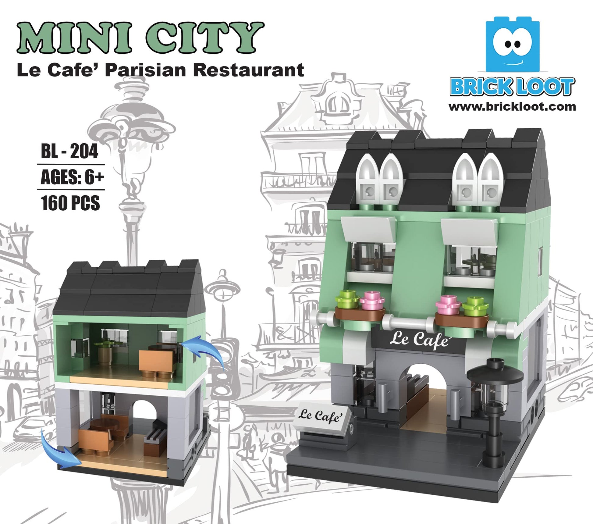 Brick Loot Exclusive Mini City Le Cafe Parisian Restaurant Boutique Modular - Custom Designed Model - Compatible With Lego And Other Major Brick Brands