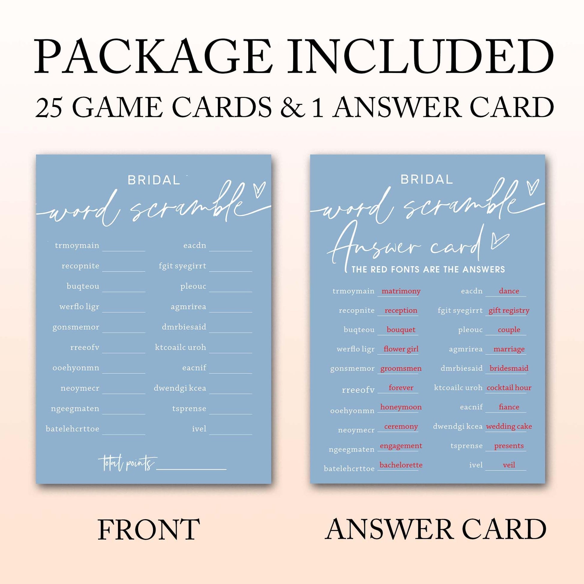 Bridal Shower Games Cards, Bridal Word Scramble, 25 Game Cards With 1 Answer Card, Engagement Party Wedding Games For Guests, Mi