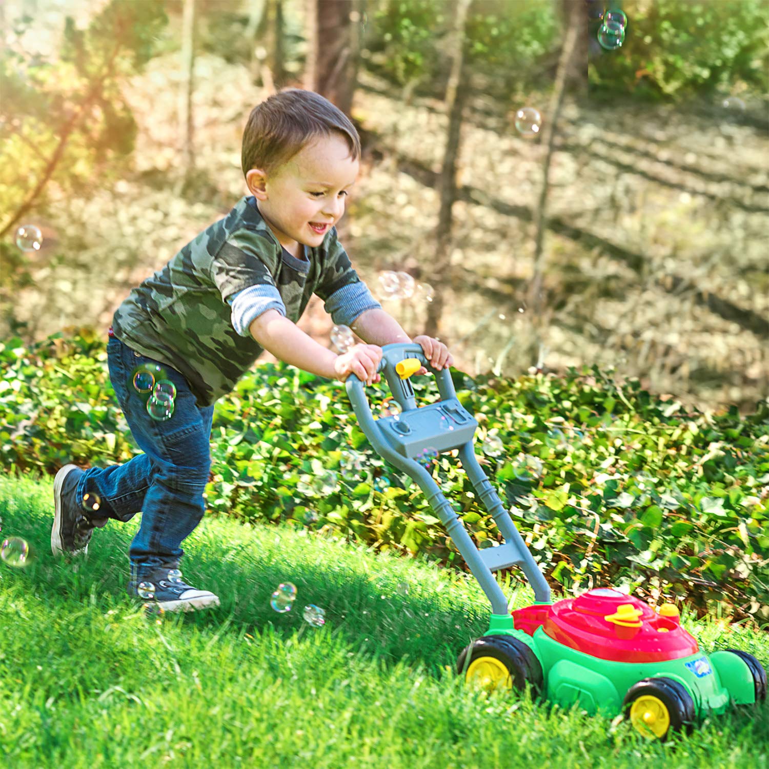 View compareBubble N Go Lawn Bubble Mower for Toddlers Bubble Blowing Machines Indoor/Outdoor Gardening Toy Birthday Party No Batteries Required Includes 24oz Bubble Solution and 24 Refill Packs Ages 2+