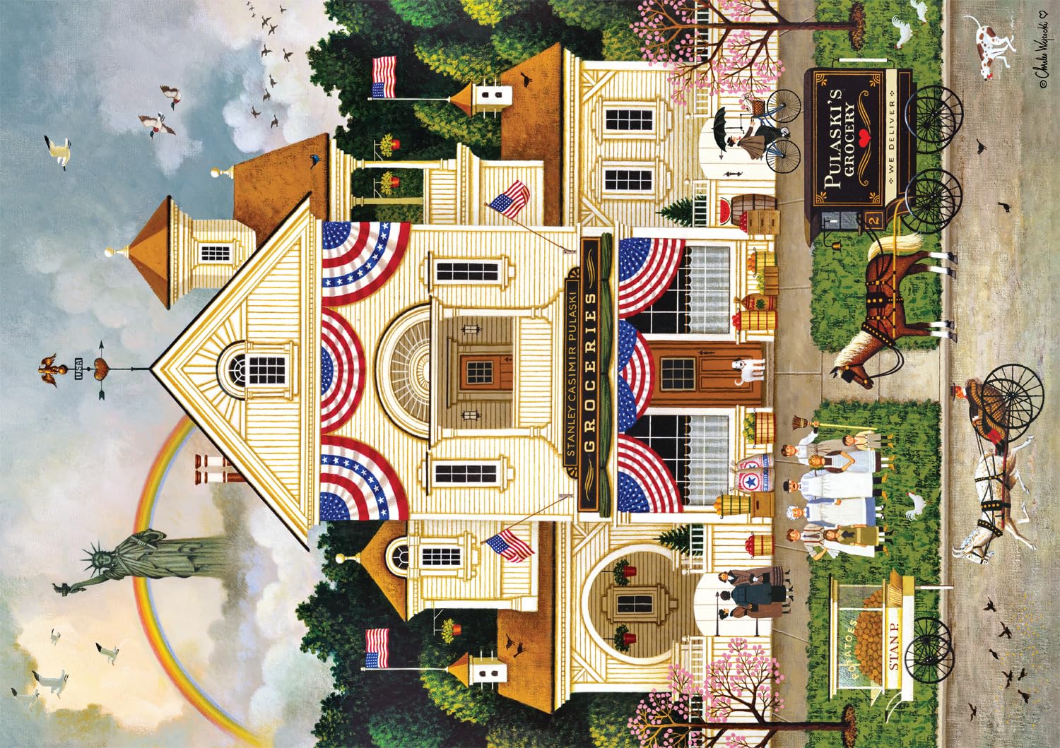 Buffalo Games - Charles Wysocki - Lady Liberty'S Independence Day Enterprising - 500 Piece Jigsaw Puzzle For Adults -Challenging Puzzle Perfect For Game Nights