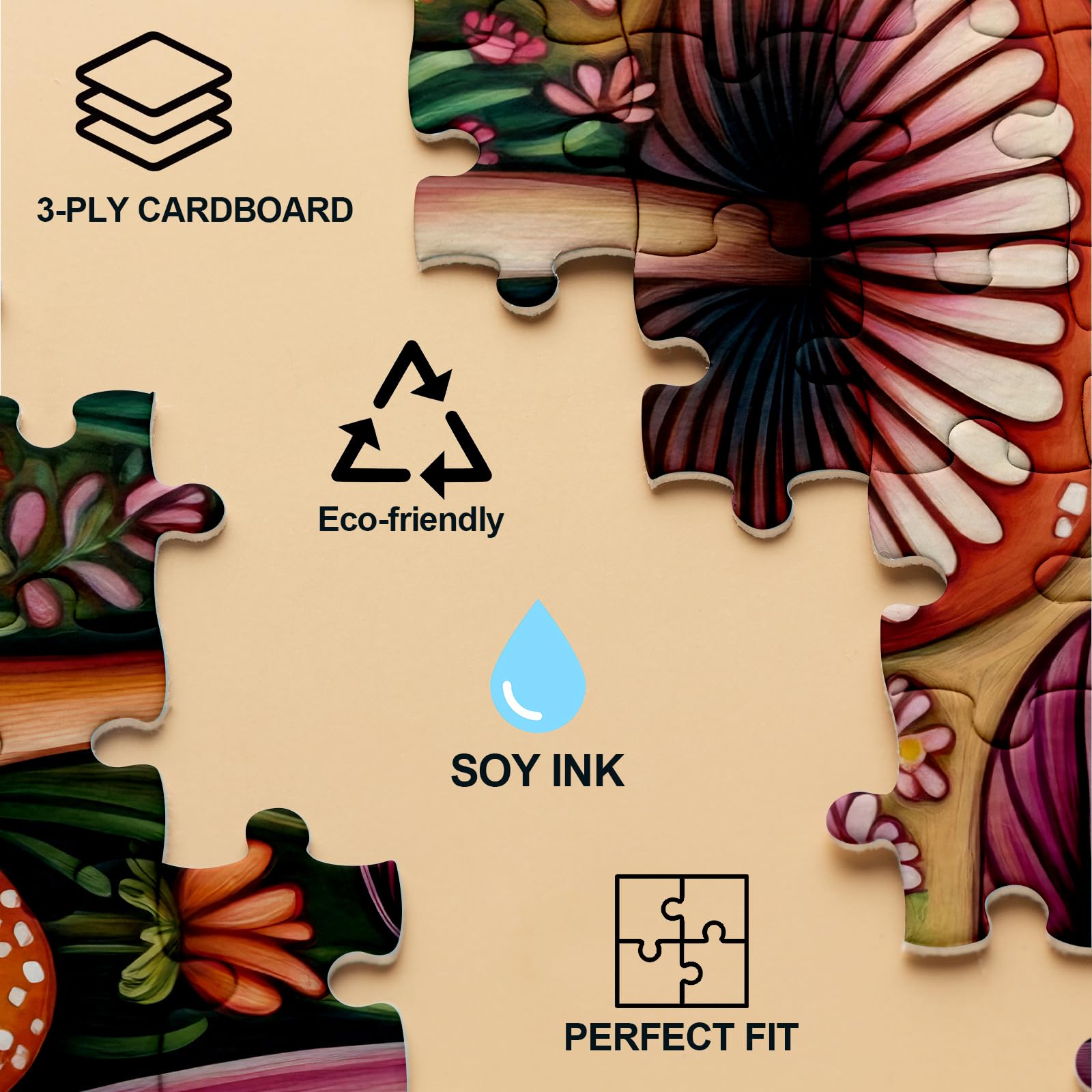 BUHAH Mushroom Flower Garden Puzzles for Adults 1000 Pieces Nature Pretty Plant Floral Art Jigsaw Puzzles Impossible Challenging Aesthetic Puzzle as Decoration