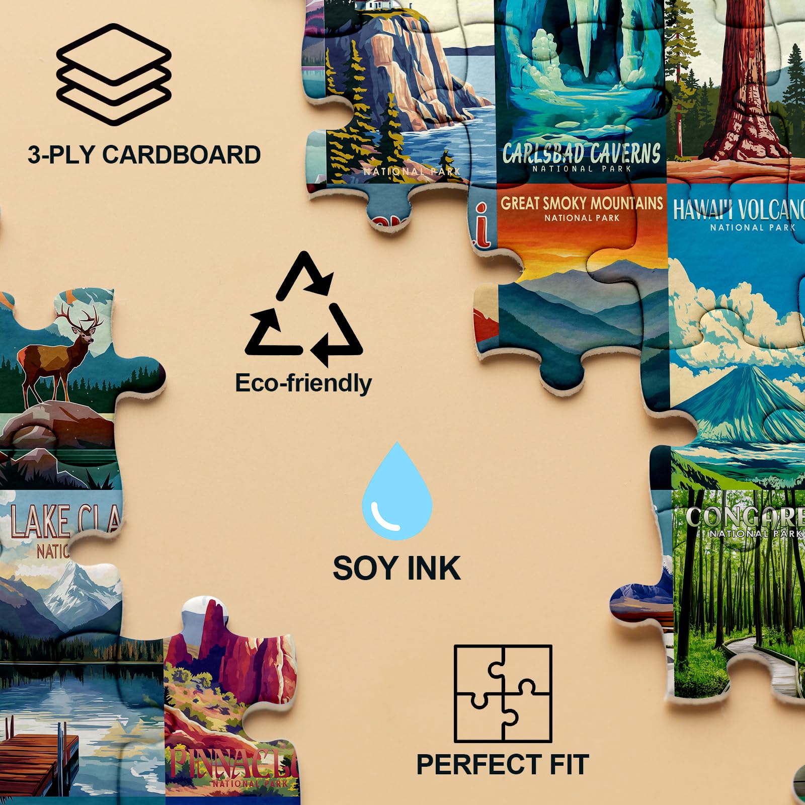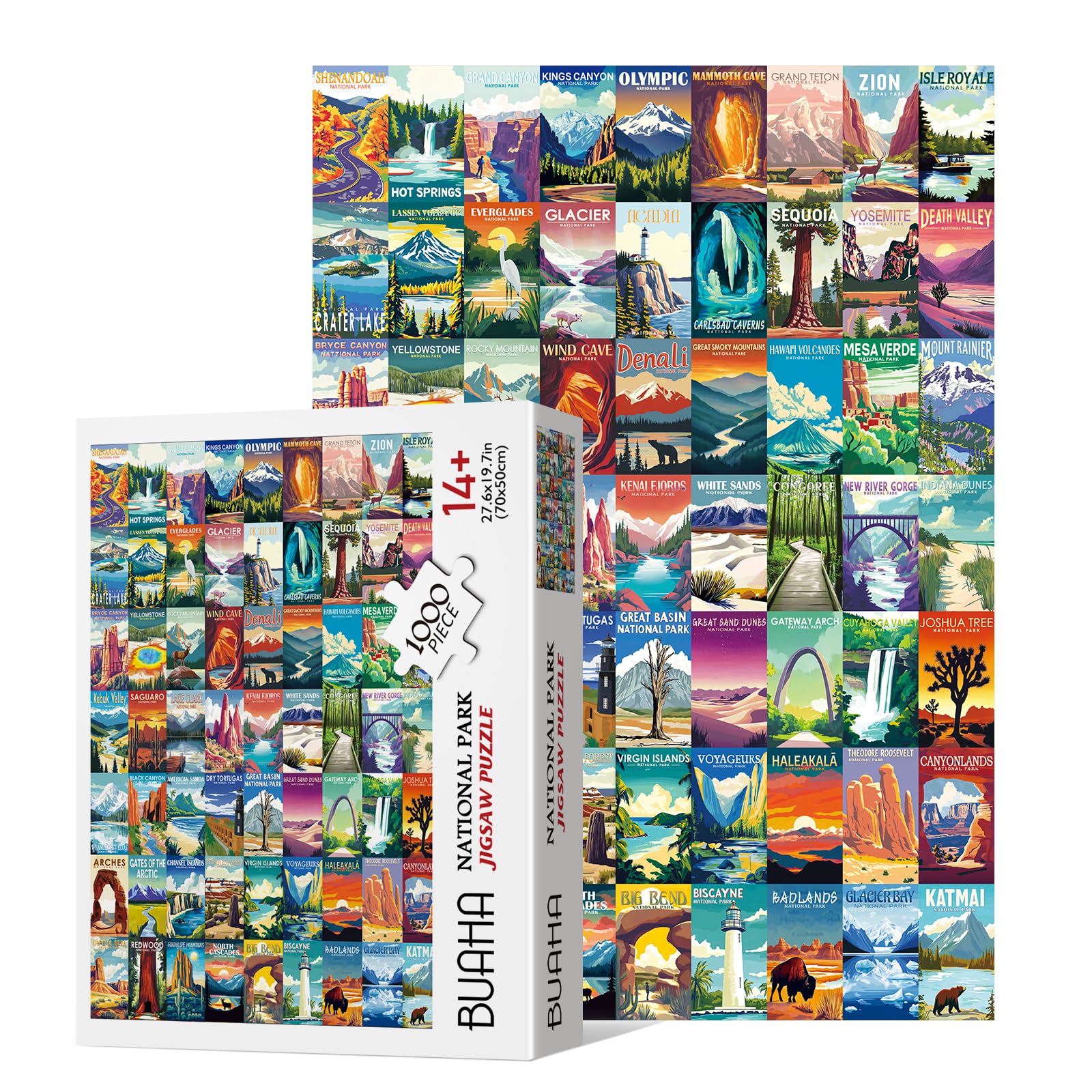 BUHAH National Parks Puzzles for Adults 1000 Pieces Nature Travel Landscape Jigsaw Puzzles United States Hawaii Yellowstone Alaska Puzzle as Family Game Decor
