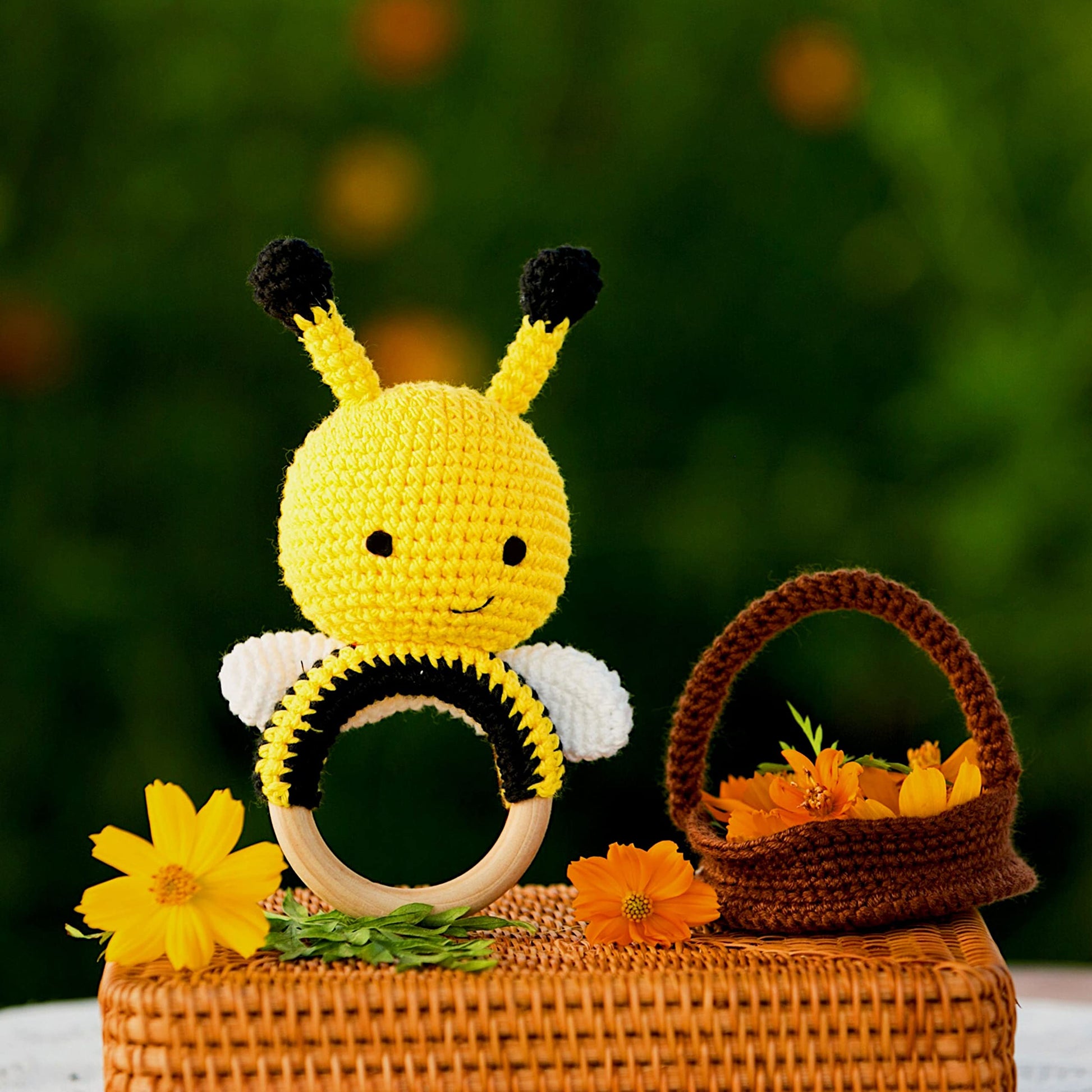 View compareBunny Wooden Baby Rattle, Crochet Bee Rattle Toy, Handmade Bee Stuffed Animal, Eye-Catching Colored Toy For Toddlers, Bumble Bee