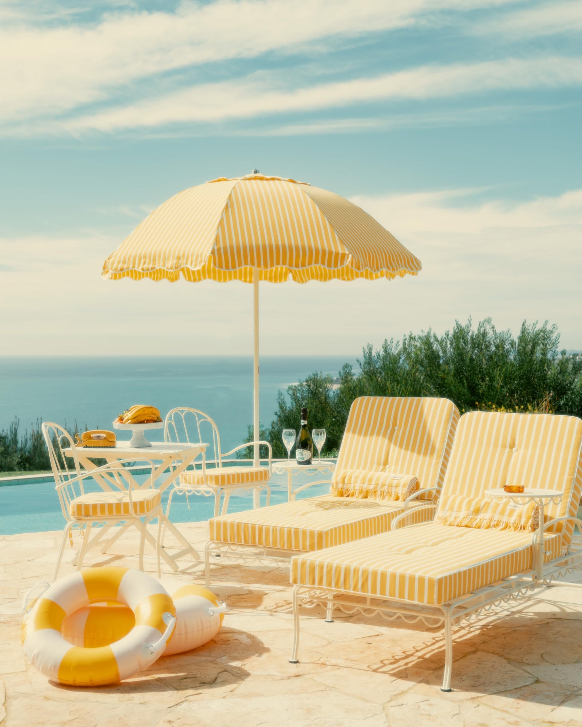 Business & Pleasure Co. Classic Pool Float - Vintage Inflatable Pool Ring For Adults - Riviera Mimosa - L/Xl