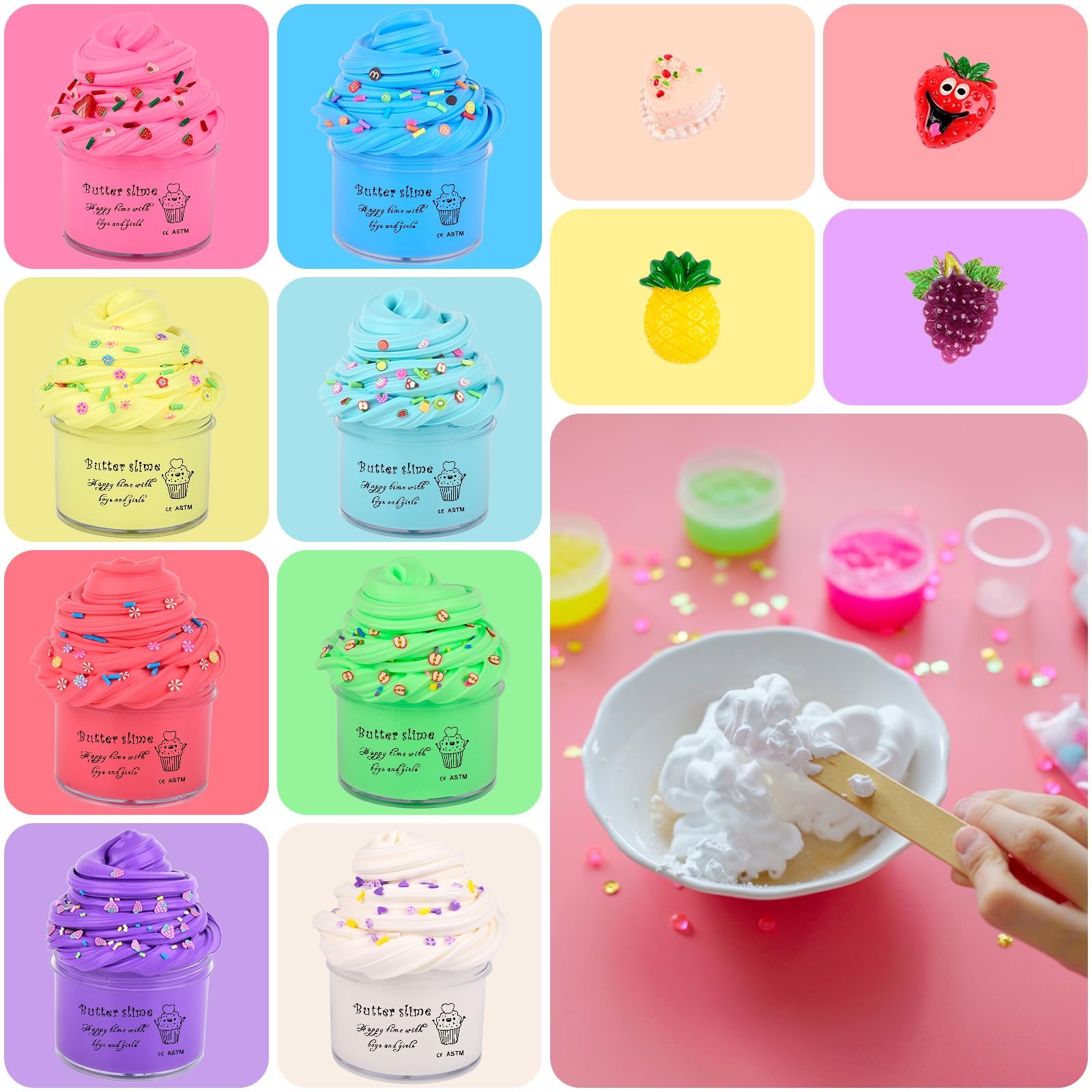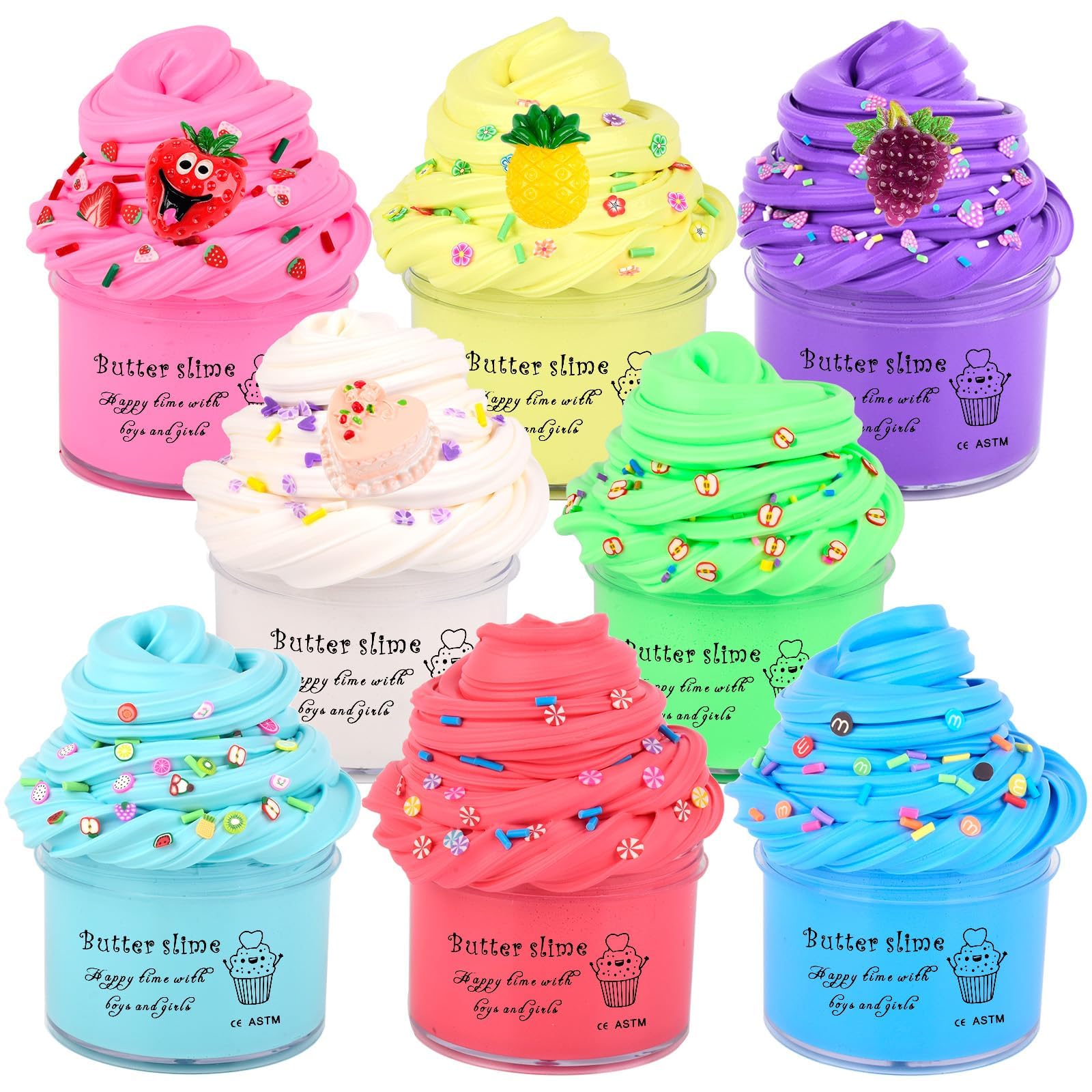View compareButte Slime Kit Mini 8 Pack Party Favor For Kids,Strawberry, Grape, Pineapple Cake Charms,Color And Texture Experience,Stress Re