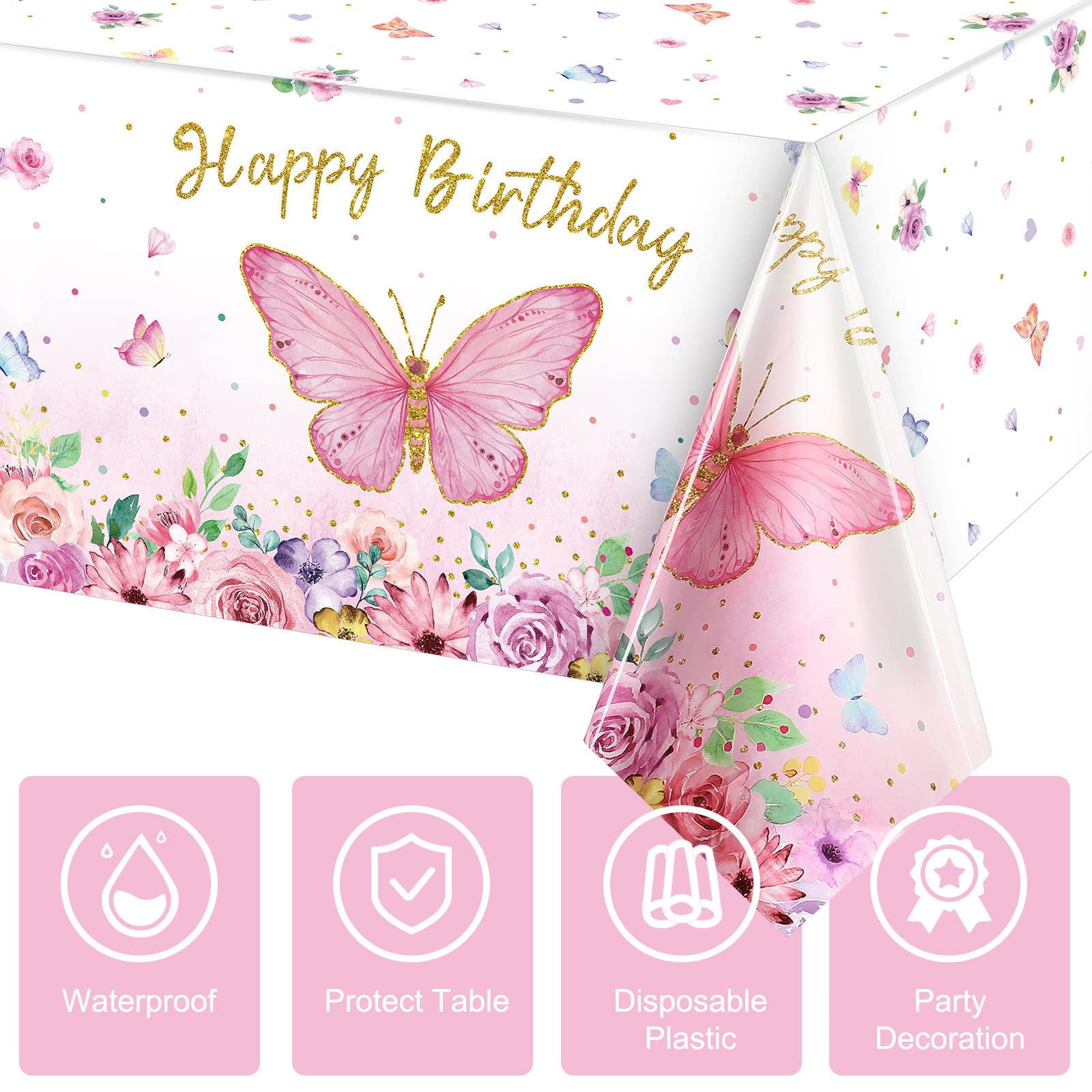 Features: Nice gift: Butterfly and flower tablecloths will become practical and creative gifts for family, friends, colleagues and neighbors. People who receive gifts will love them deeply, because they can also be nicely matched with other spring themed supplies to create a beautiful camping party. Quality materials: These butterfly happy birthday table supplies are made of quality plastic, are lightweight, waterproof and easy to clean. You can use them as table decorations at spring holiday parties to create a stylish and loving party atmosphere, and you will have a pleasant experience. Specifications: Material: plastic Color: as pictures shown (pink) Size: approx. 108 x 54 inch/ 274 x 137 cm (length x width) Package includes: 3 x Happy birthday butterfly tablecloth Warm notes: It is recommended to wash by hand and dry in a well-ventilated place. Manual measurement, the size is slightly wrong. Due to different screen displays, there may be slight differences in colors.