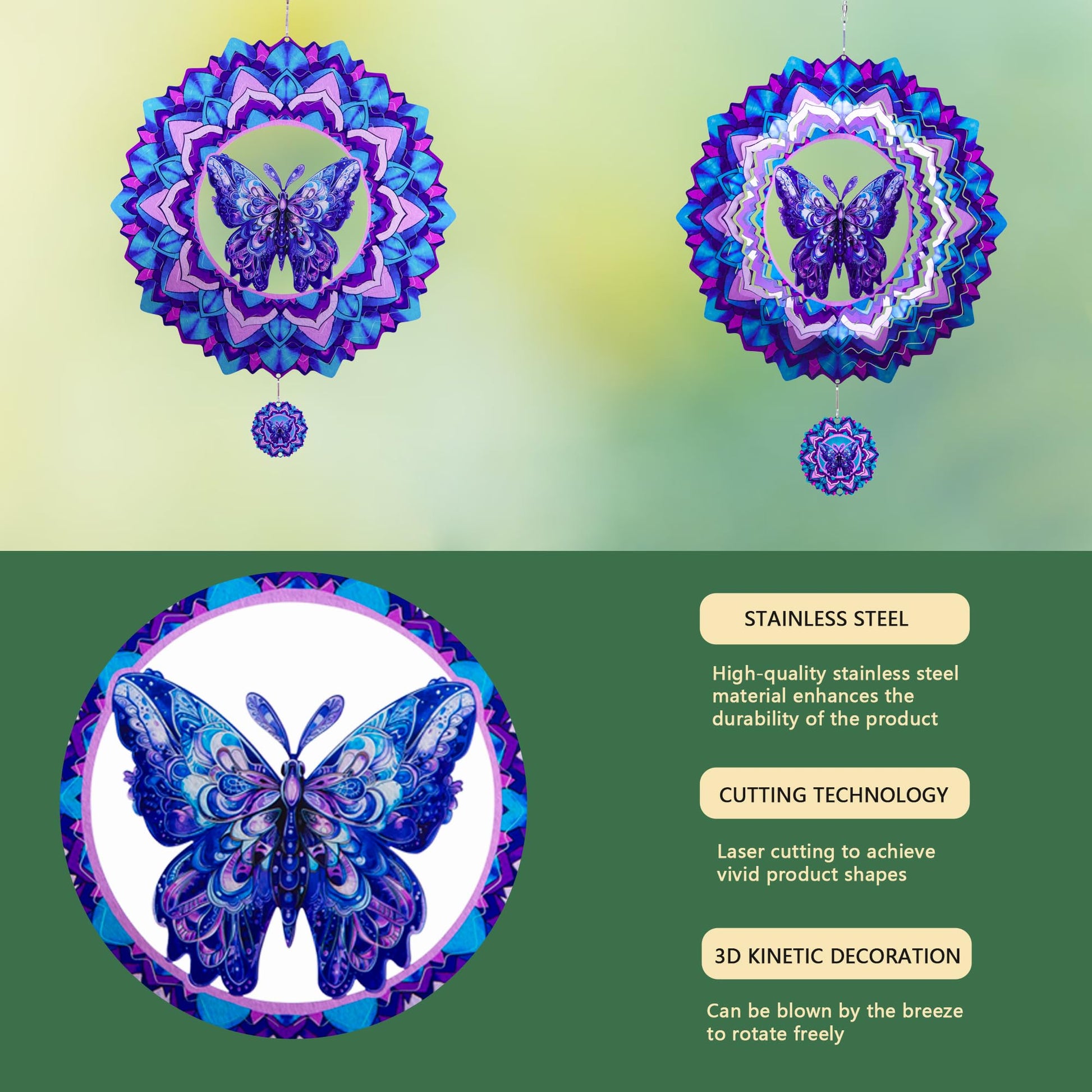 Butterfly Wind Spinner,Hanging Wind Spinners Outdoor for Garden Decoration,12 inch 3D Stainless Steel Wind Sculpture for Indoor/