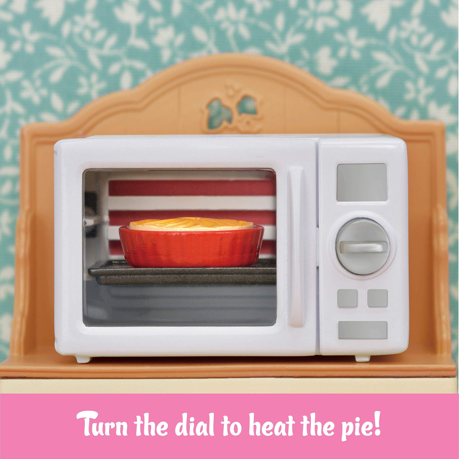 - Q: Is the microwave functional in the Calico Critters Microwave Cabinet? A: Yes, the microwave in the Calico Critters Microwave Cabinet features a working dial that allows you to turn it and watch the pie heat up, adding a fun interactive element to playtime.