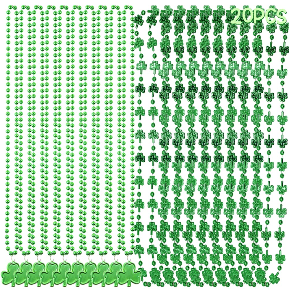 CAMIRUS 20Pcs St. Patrick's Day Shamrock, Irish Clover Green Bead Pendant, St. Patricks Day Metallic Shamrock Beaded for St. Pat