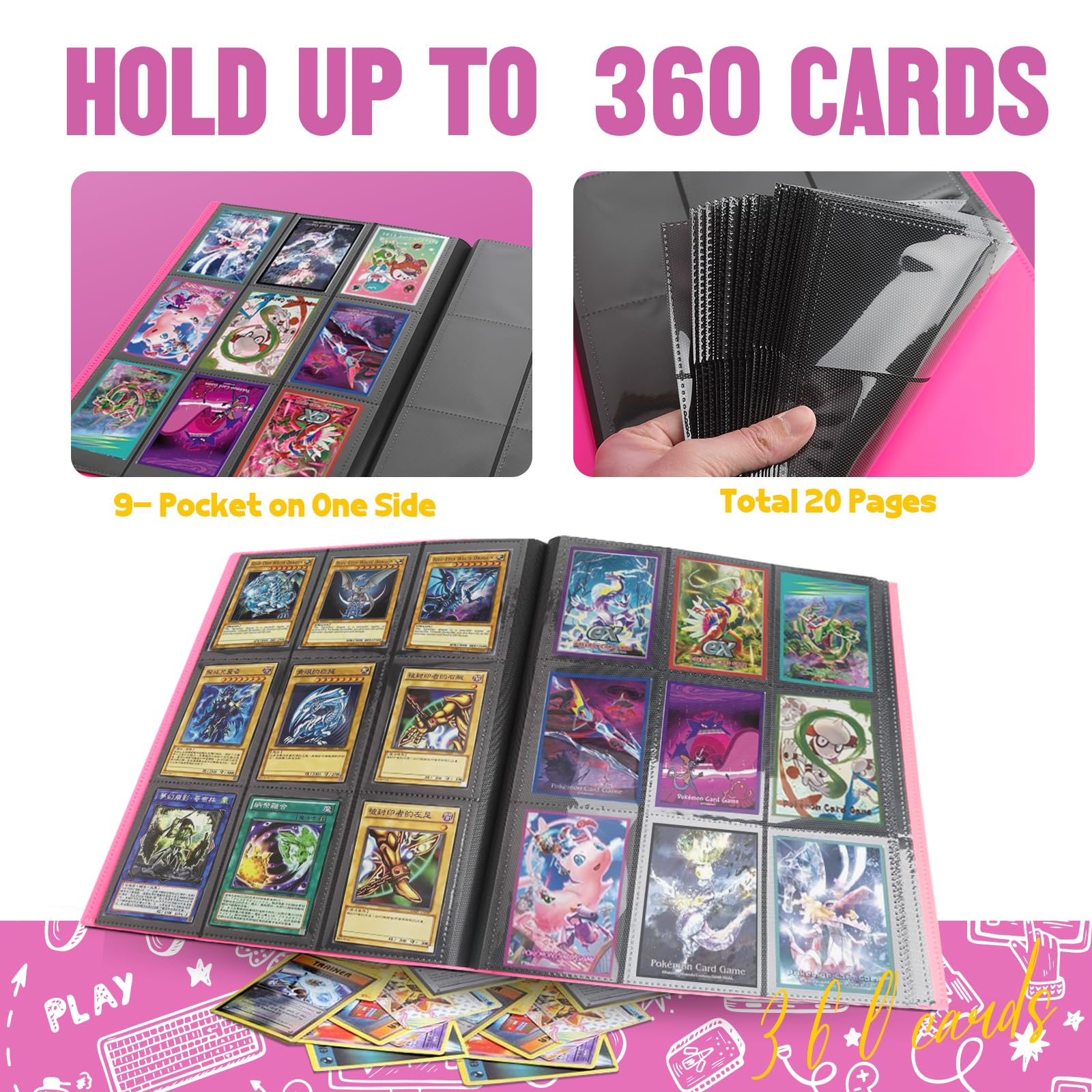 Trading Card Album Folder 20 Pages 360 Card Capacity Sports Card Binder enhanced Card Binders Compatible with MTG TCG Baseball Cards Suitable for card collectors