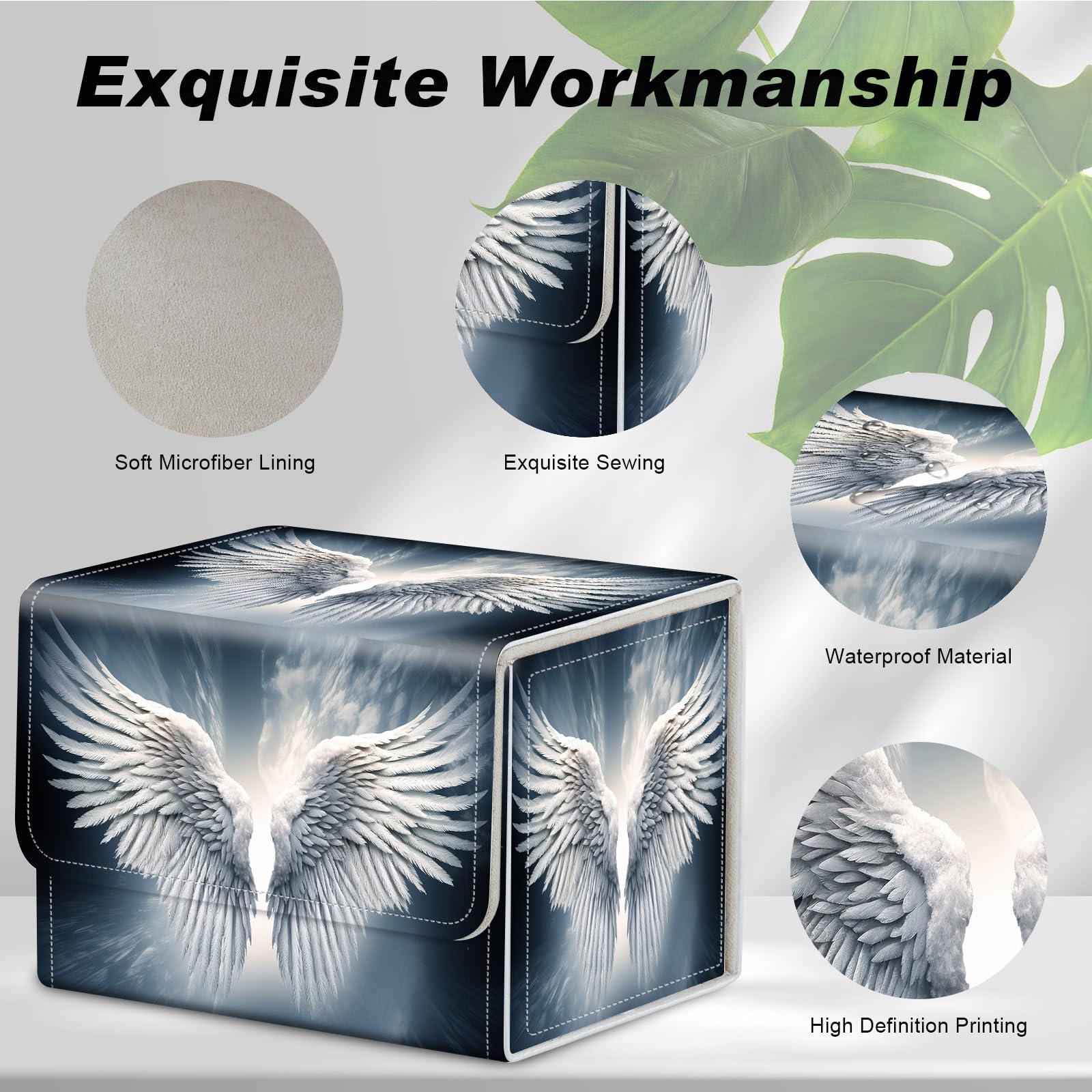Card Game Storage Box TCG Deck Box MTG Card Box Organizer Trading Card Case Commander Deck Box TCG Card Storage Box Magnetic Closure Creative Pattern Up to 200 Cards Sacred Angel Wing