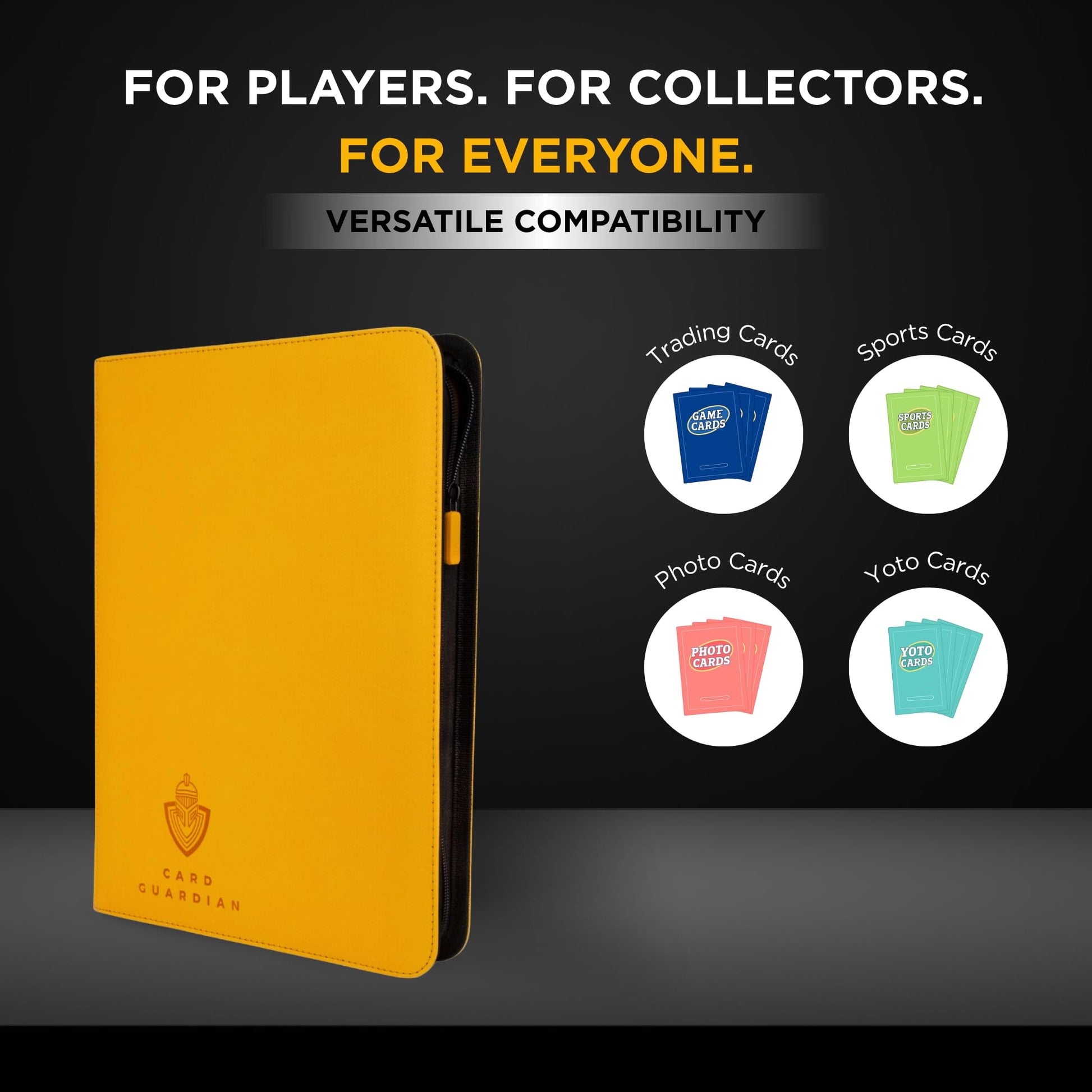 Card Guardian - 9 Pocket enhanced Black Binder with Zipper for 360 Cards - Side Loading Pockets for Trading Card Games TCG (Yellow)