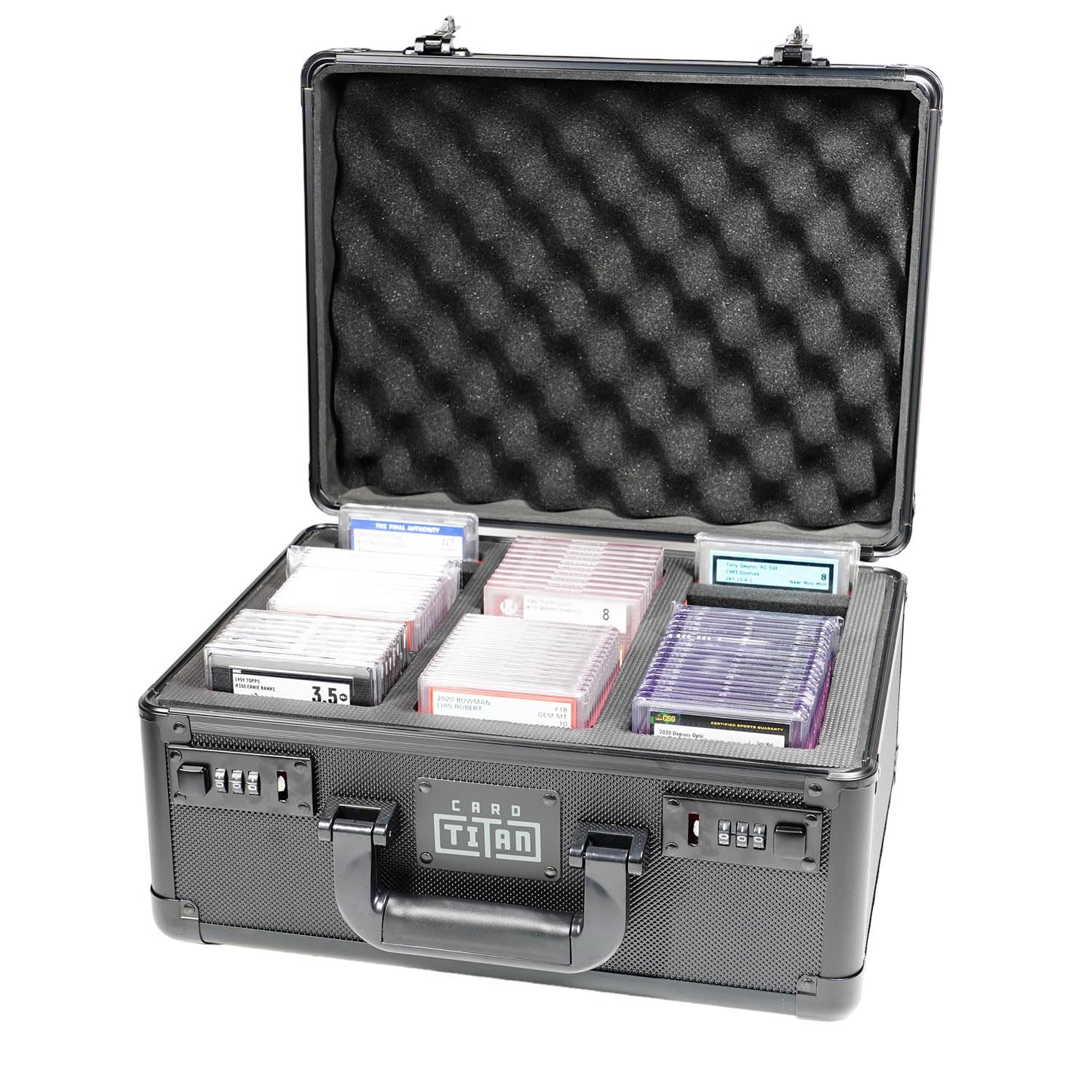 Card Titan Slab Safe Premium Trading Card Storage Box - 3 Row Lockable Sports Card Case with Laser Cut Foam Interior - Holds up