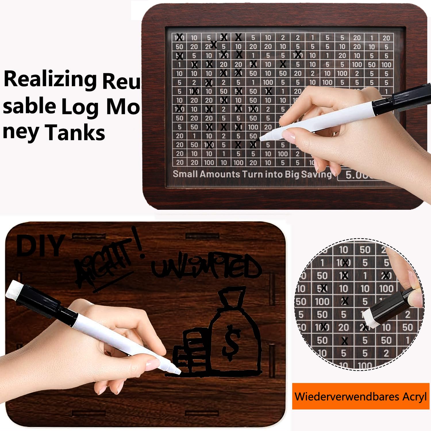 View compareCash Vault Wooden Savings Box 10000 5000 15000 3000 2000 1000 500 Cash Box With 2 Blank Savings Tracker, Official Save Box(Creat