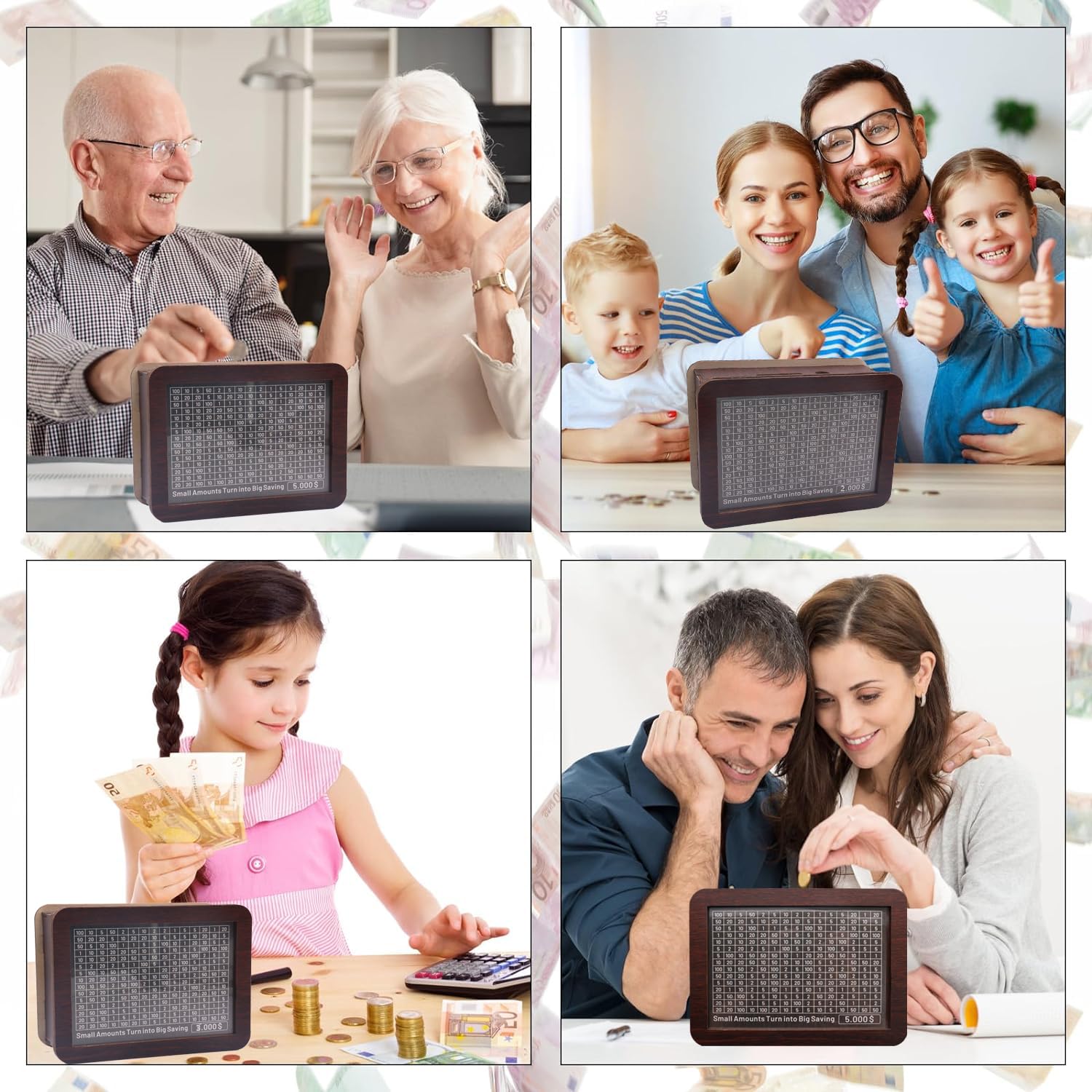 - Q: Can I use this savings box for different saving goals? A: Absolutely! The savings box comes with multiple savings goals ranging from $500 to $15,000, allowing you to customize it based on your personal savings objectives.
