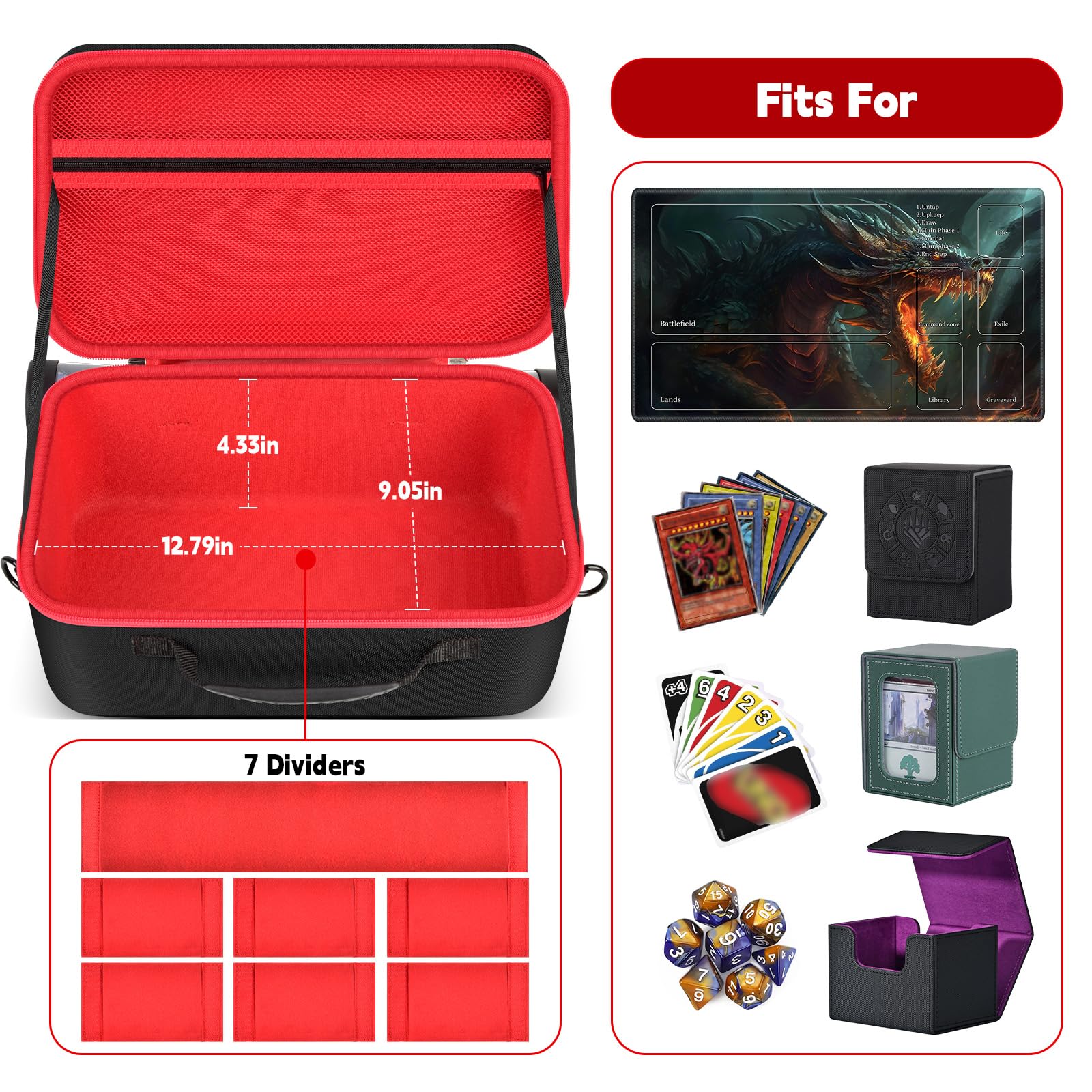 Master Card Organization &Amp; Protection!This Versatile Storage Box Is The Ultimate Solution For Magic: The Gathering (For Mtg), For Tcg, And Sports Card Players And Collectors. Experience Unparalleled Flexibility And Robust Protection For Your Valuable Bulk Card Storage Collection. (Case Only, Does Not Contain Any Game Cards And Deck Box)Customize Your Space: Includes 6 Removable Velcro Dividers! Easily Configure The Interior To Perfectly Fit Your Small Card Storage Boxes (Not Included) Or Store Loose Cards Directly. Premium Protection: Features A Soft, Plush Interior Lining That Gently Cushions Cards And Boxes, Shielding Them From Scratches. The Tough, Scratch-Resistant Exterior Provides Rugged Defense During Travel And Storage.Smart Organization &Amp; Play Ready:Zippered Mesh Pouch: Securely Holds Dice, Tokens, Sleeves, Or Spare Cards.Internal Support Straps: Keep The Trading Card Storage Box Bag Wide Open And Stable During Gameplay For Instant Card Access.Smooth Dual Zippers: Ensure Easy, Reliable Opening And Closing.Portable &Amp; Convenient:Detachable Shoulder Strap: Adjustable For Comfortable Carrying.Sturdy Top Handle: Perfect For Quick Grabs.Take Your Organized Collection Anywhere &Ndash; Tournaments, Game Nights, Or Trading.Carry Your Game Mat: Back Panel Features Velcro Strap Loops To Securely Hold Your Rolled Playmat (Tube Not Included).Built Tough: Constructed From Premium Materials For Collectible Trading Card Cases Long-Lasting Protection Of Your Cards And Accessories.Includes: 1 Storage Box, 6 Velcro Dividers, 1 Shoulder Strap.