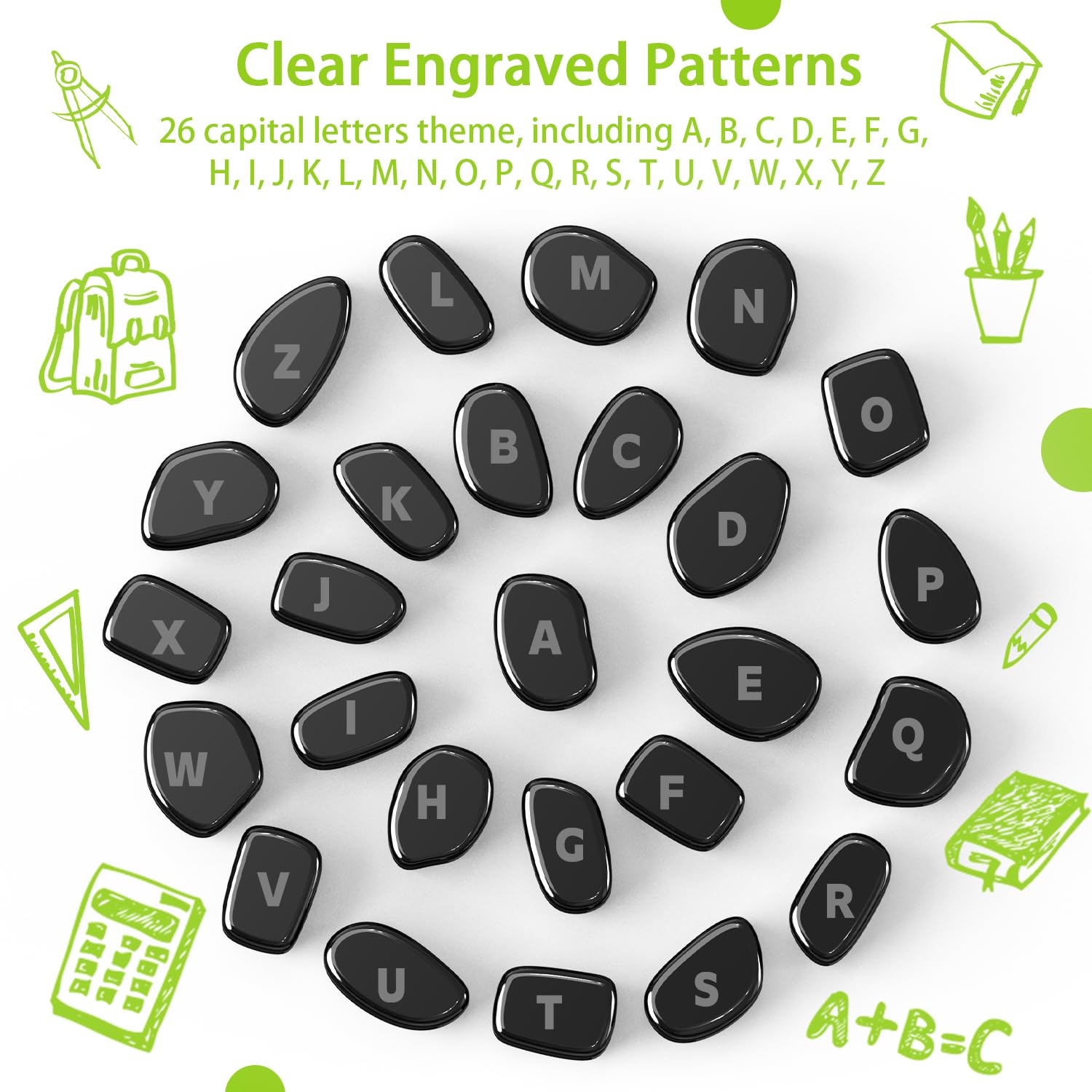 Caturledas 26 PCS Ferrite Stones Engraved Capital Letter Laser Carving Magnetic Fidget Toys for Office Stress Anxiety Relief Executive Desk Magnet Toys for Men Women mature-themeds Gifts 20 mm Black
