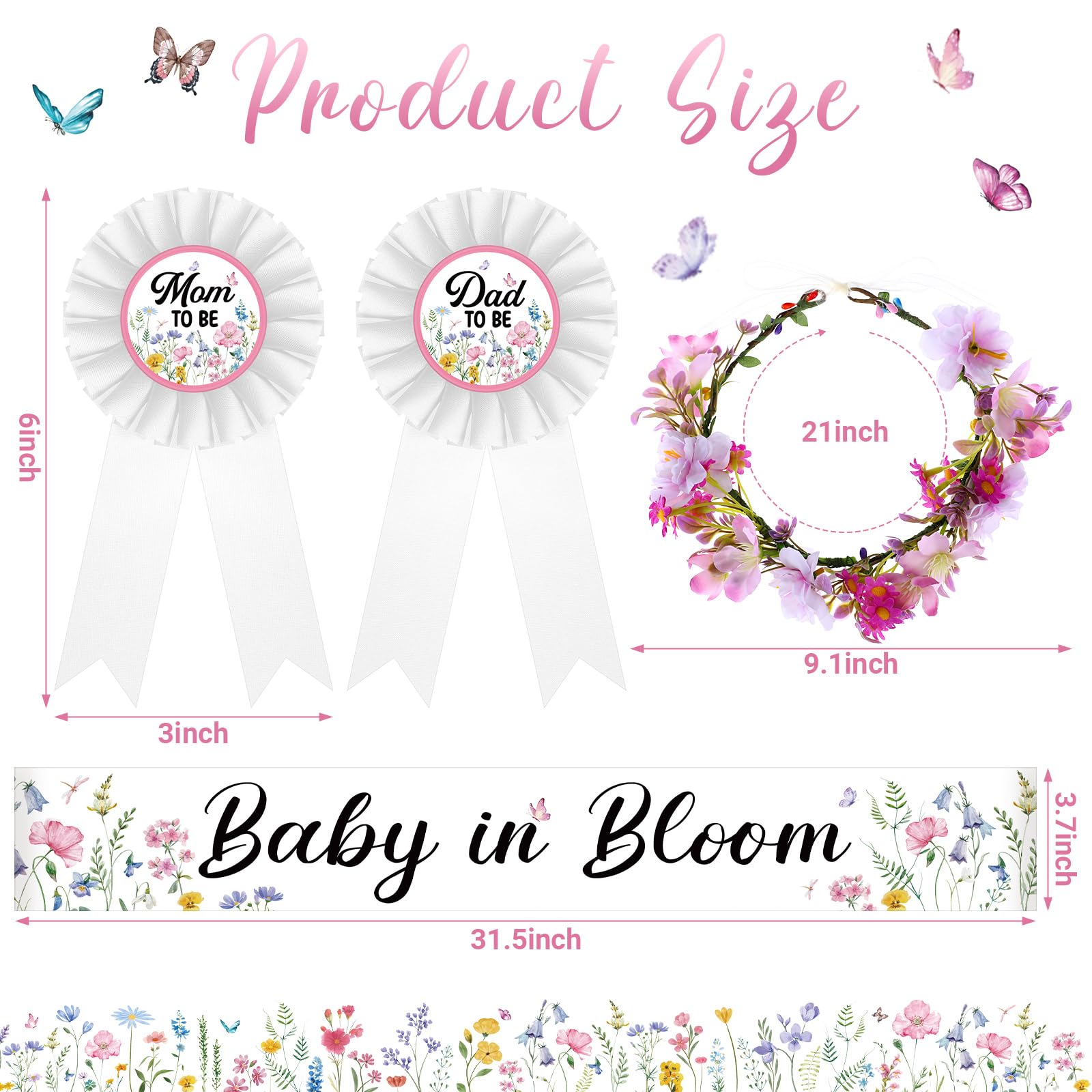 Ceenna Wildflower Baby Shower Decorations Baby in Bloom Floral Mom to Be Sash and Dad to Be Pin Flower Crown for Gender Reveals