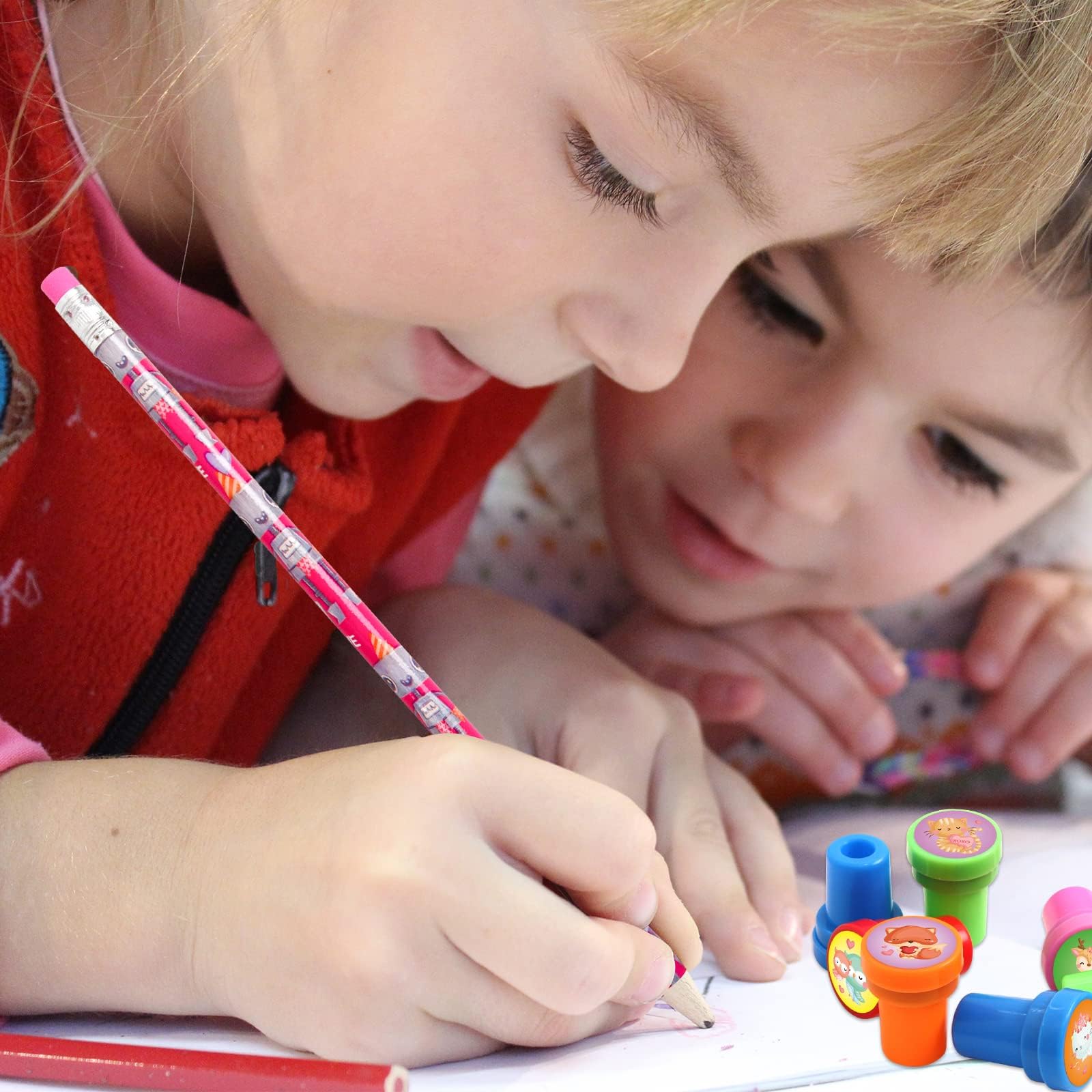 ceiba tree 24 Pack Valentines Day Stationery Gift Set with Treat Bags Stamps Pencils Stickers Rulers Notepad for Kids Party Favo
