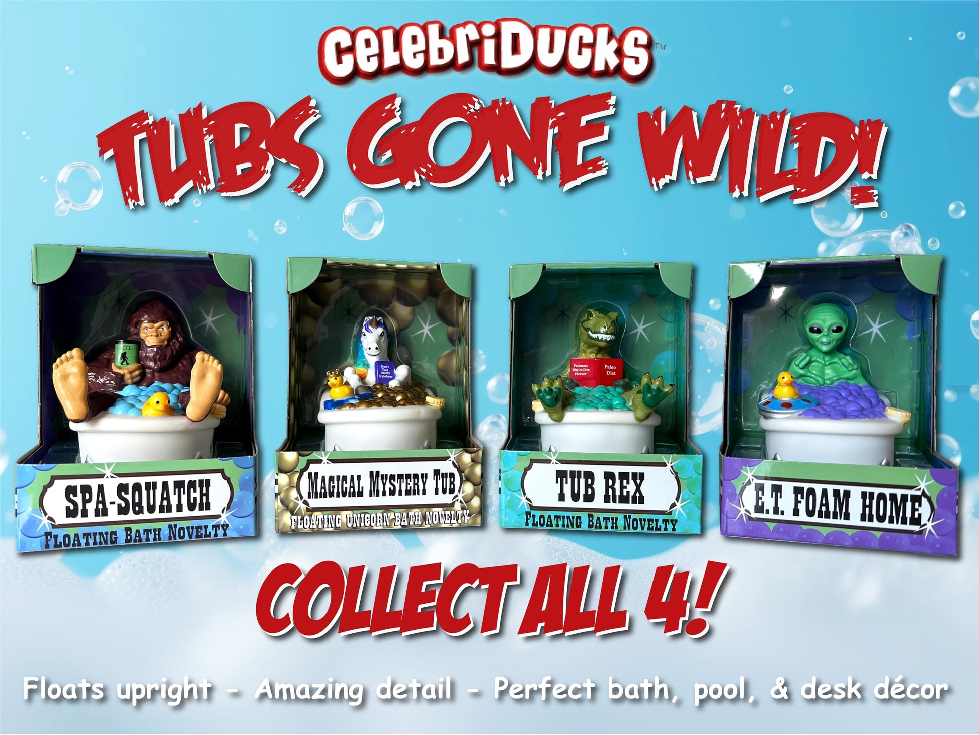 Check CelebriDucks newest line... Tubs Gone Wild! Here we have Spa-Squatch... Bigfoot Feel Good Relaxation Organization! Any bigfoot lover out there will immediately recognize this Yeti with his yeti cup and silhouette! The artwork and theming is second to none! These are perfect for collectors, Jeep owners, imaginative children, and anyone that has a heart for these mystical/mythical/alien beings & beasts!