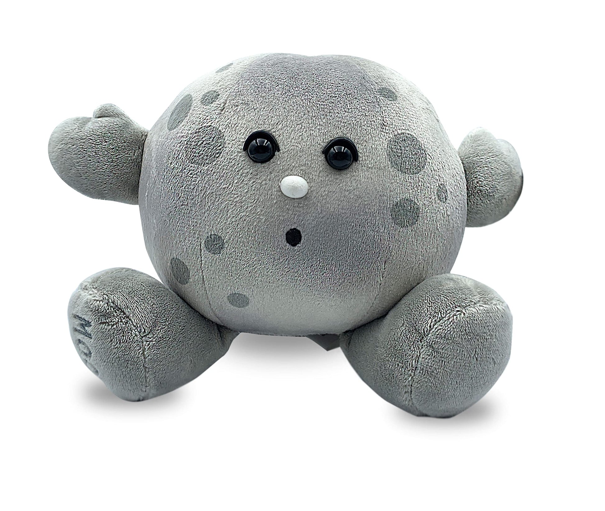 I’m Moon Buddy, a cute grey celestial companion! Little Earth and I are besties! I am the Earth’s only natural satellite, held in orbit by a mutual attraction to Earth’s gravity. My craters are represented by spots on my surface. I’m excited for NASA’s Team Artemis to visit me again by 2024!'