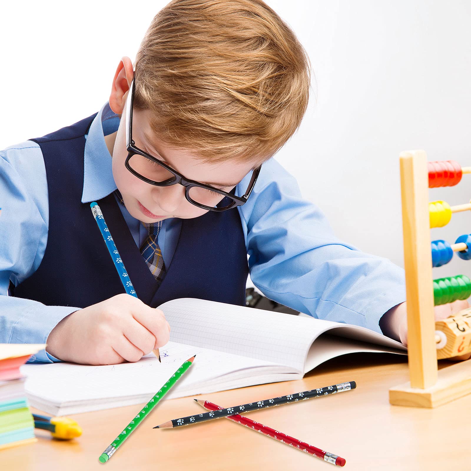 Censen 24 Pieces Operation Christmas Gifts Paw Print Pencil Eraser Sets 6 Colors Wooden Pencils for Kids Dog Themed Birthday Par
