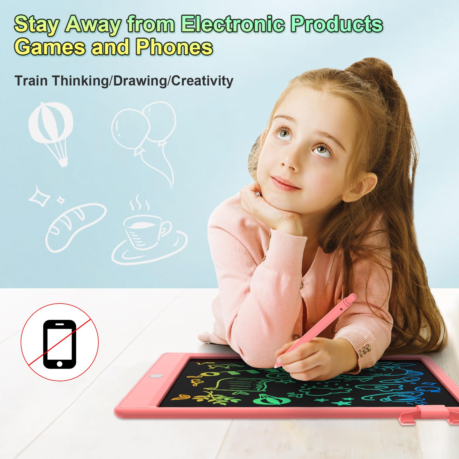 CHAFEGY LCD Writing Tablet for Kids, Educational Learning Toys & Gifts Colorful erasable doodle board drawing pads, CHAFEGY lcd drawing tablet for boys and girls, is good for gifts, back to school, Birthday, Christmas, Thanksgiving Day, Valentine, Easter etc. Reusable kids drawing pad is an inspirational or educational toy, is easy enough for a toddler to practice mark making and for older children to write, draw, doodle, and create art etc. Multi-purpose erasable drawing board 1. Kid Learning Toy -- writing or scribble, drawing, encourages children to learn how to hold a stylus correctly. 2. Memo Board -- write to-do lists as a memo pads, replacing sticky notes, leaving messages, drawings to each other. 3. Doing homework & Sketching Tool-for students mathematical calculations or drafting, using it while doing homework, to solve math problems 4. Game Tool for family-enjoying game like crossword puzzle, fun drawings with child, Its a great way to get her away from screens. Gifts for toddler boys girls i) Durable & Portable: Our drawing pad for toddlers is portable and lightweight, allowing kids to take their creativity outdoors, toddler travel toy, Ideal for age 1-3,3-5,5-8 etc. And the lanyard is nice so that you dont have to worry about losing the stylus. ii) Safety: Drawing board for kids, no harmful blue light, radiation, or glare, this magic tablet ensures a clear and vivid screen from any viewing angle. iii) Colorful Screen: Doodle board drawing tablet is rainbow colors, the bright blue or pink is vibrant and fun allows. iv) Waterproof: Drawing tablet kids have waterproof design. Get one, you can bring this to places where you dont want your kid to be using markers on couches. You dont end up with an enormous pile of scrap paper that you are banned from ever recycling. Its great!