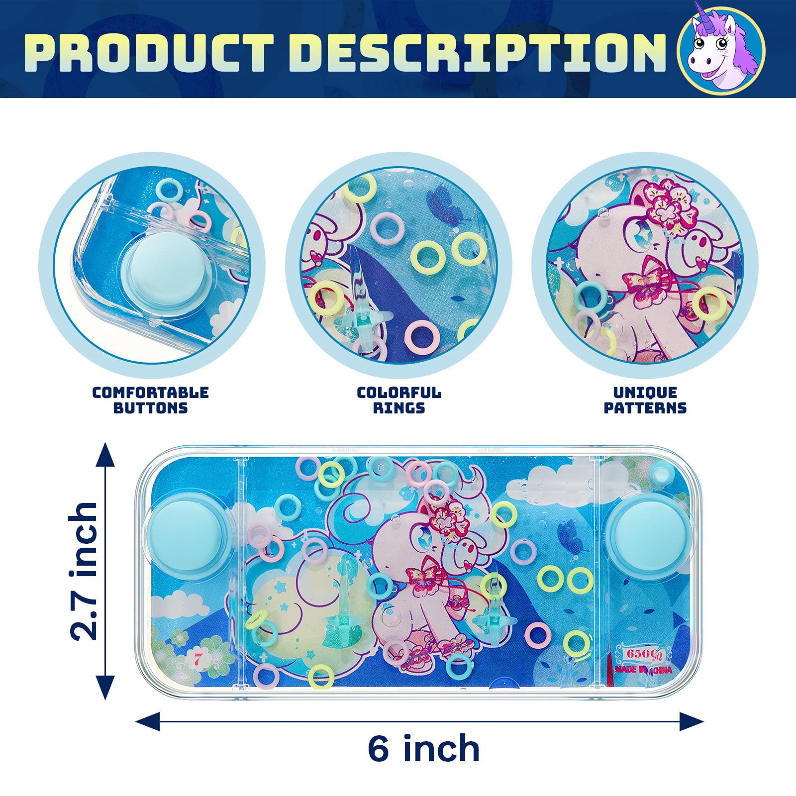 - Q: Are the colors of the water ring toys fixed or random? A: The colors of the handheld water games are unfixed and random, offering a surprise element with each purchase. You will receive a mix of different colors in your package.
