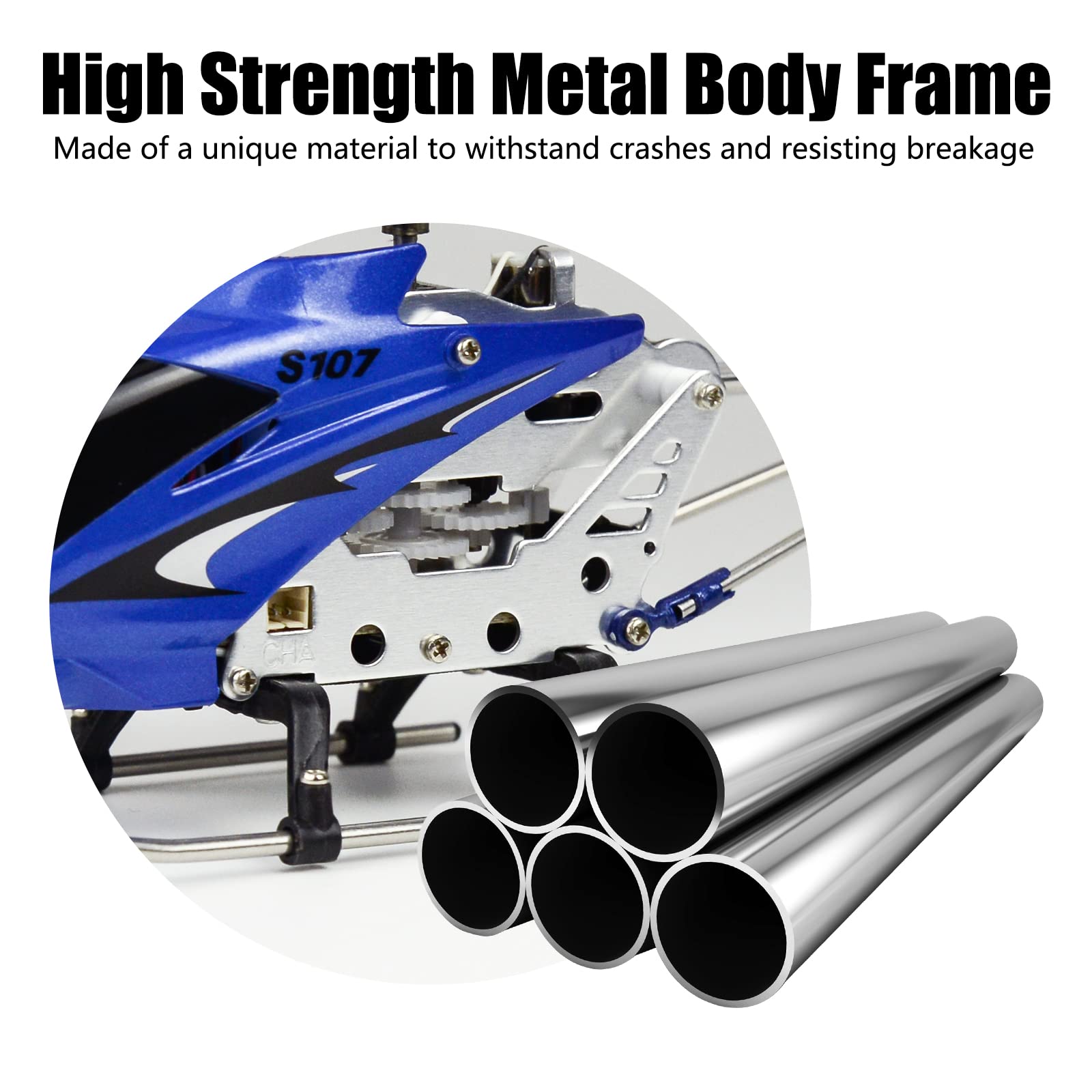 This S107 mini rc helicopter is the world's most durable and stable helicopter. The item comes with the latest gyro system for precision control. The metal frame has proven to withstand dozens of crashes. The mini helicopter charges directly from the controller which uses ''AA'' batteries and has a full-function trim control for the perfect flight. Get one today before they all fly away!