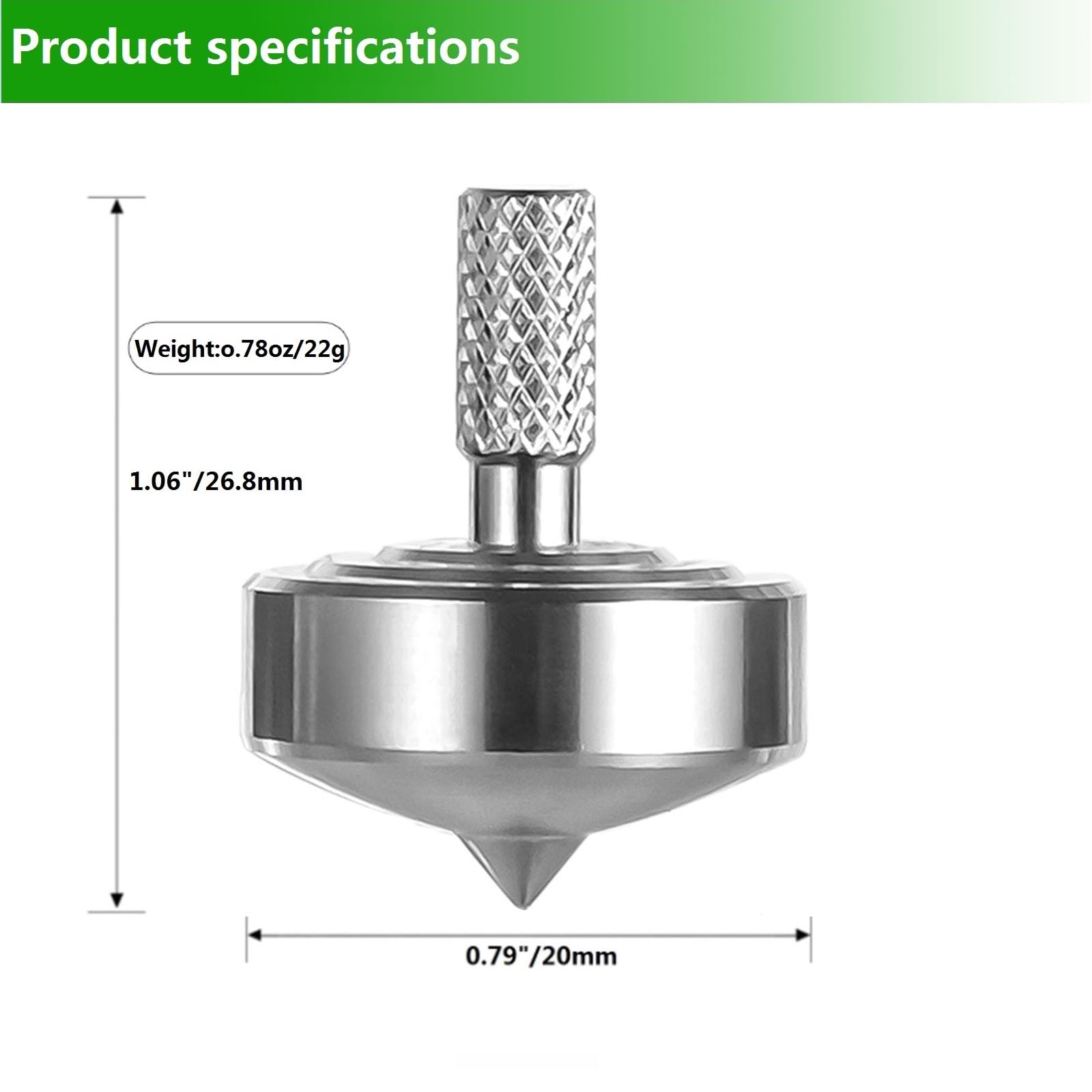 About Us: We mainly concentrated on designing Manufacturing and selling of physics toys. Hope our products can bring you endless pleasure.Best Gift: The top is a very meaningful gift memories of childhood precious friendship you can send it as a gift to your friends or relatives and so on.Durable: All of our tops have excellent wear resistance are well made have no scratches no machine marks and are perfectly balanced.Knurled Upper Top Body: Knurling on the stem allows for a high-torque rip to develop high RPMs at launch At the same time easier to spin.Spin Long Time: After practicing a skilled mature-themed could spin it for 3-6 minutes easily. A perfect gift for every spinning top lover.High Performance: this is a terrific looking high performance mini spinning top. Launches easily settles quickly and spins Quiet smoothly. well-made: We inspect and test each top carefully (and violence test was introduced too) to ensure you have a good shopping experience. Overall Dimensions: 0.74 inch/ 0.83 inch(Diameter x High) Net Weight: 0.95oz Material: 304 Stainless Steel Silicon Nitride Ceramic beads Packing List: Spinning Top x1