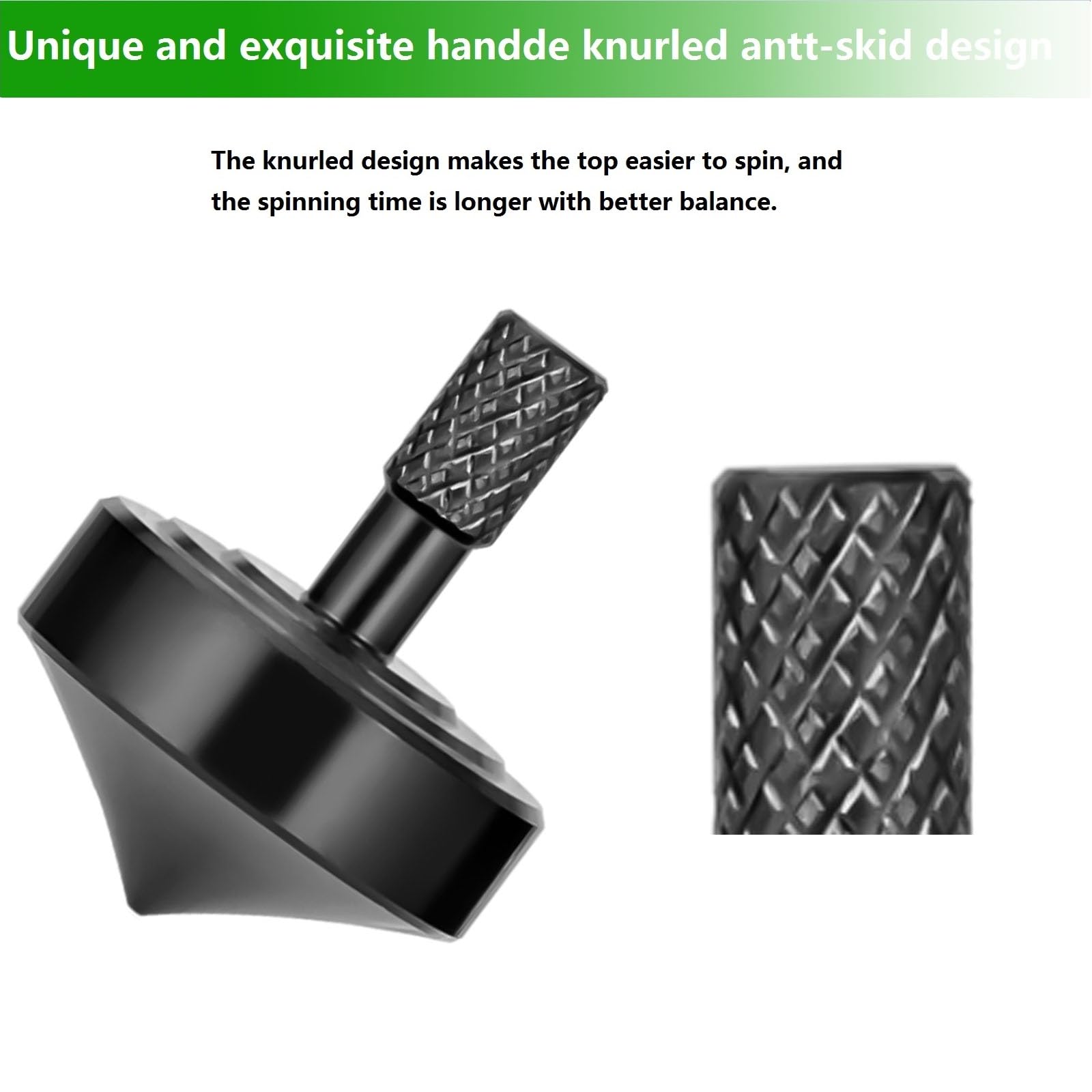 About Us: We mainly concentrated on designing Manufacturing and selling of physics toys. Hope our products can bring you endless pleasure.Best Gift: The top is a very meaningful gift memories of childhood precious friendship you can send it as a gift to your friends or relatives and so on.Durable: All of our tops have excellent wear resistance are well made have no scratches no machine marks and are perfectly balanced.Knurled Upper Top Body: Knurling on the stem allows for a high-torque rip to develop high RPMs at launch At the same time easier to spin.Spin Long Time: After practicing a skilled mature-themed could spin it for 3-6 minutes easily. A perfect gift for every spinning top lover.High Performance: this is a terrific looking high performance mini spinning top. Launches easily settles quickly and spins Quiet smoothly. well-made: We inspect and test each top carefully (and violence test was introduced too) to ensure you have a good shopping experience. Overall Dimensions: 0.74 inch/ 0.83 inch(Diameter x High) Net Weight: 0.95oz Material: 304 Stainless Steel Silicon Nitride Ceramic beads Packing List: Spinning Top x1