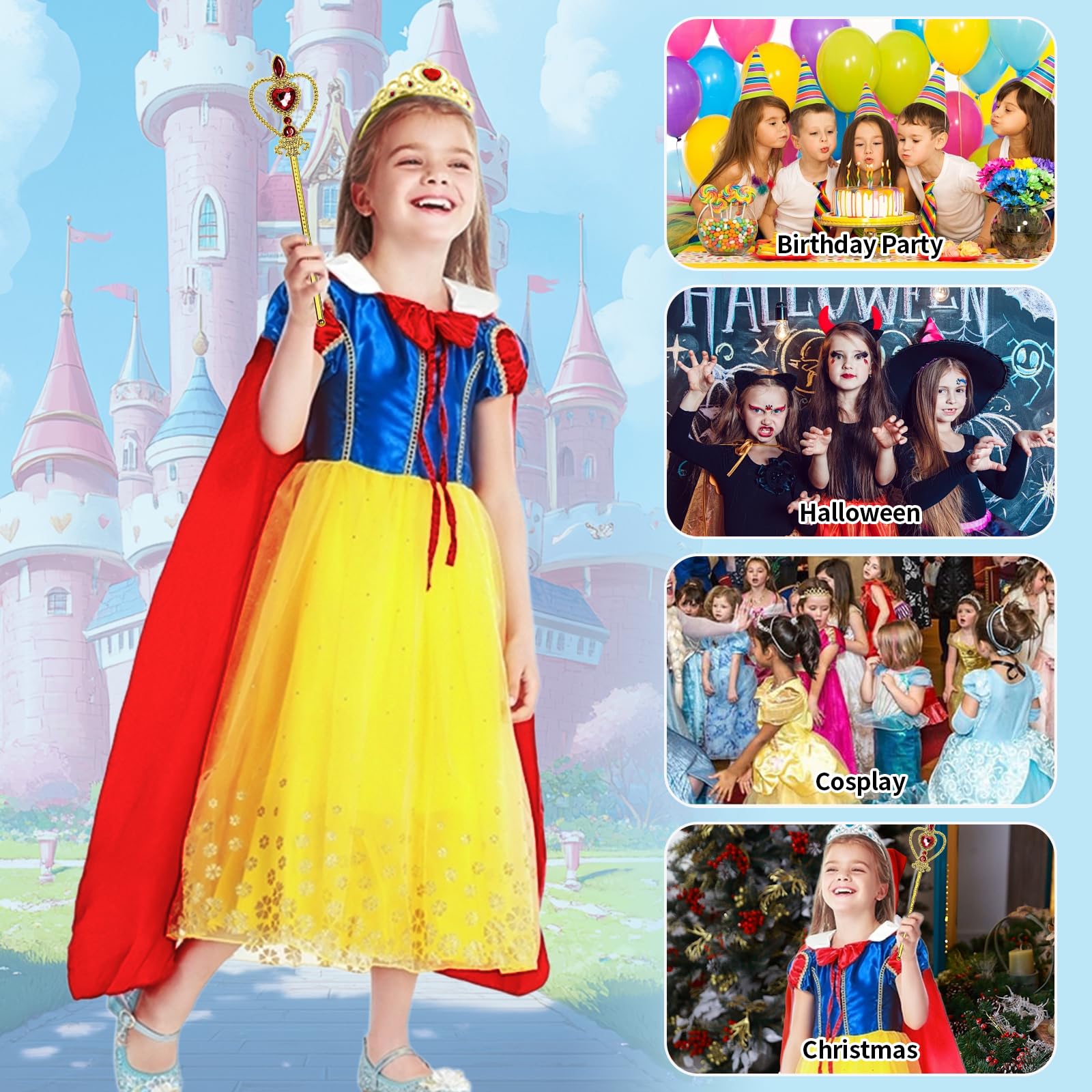 Princess Dress up for Girls Halloween Costume Toddler Kids Birthday Party Cosplay Outfit with Accessories Yellow
