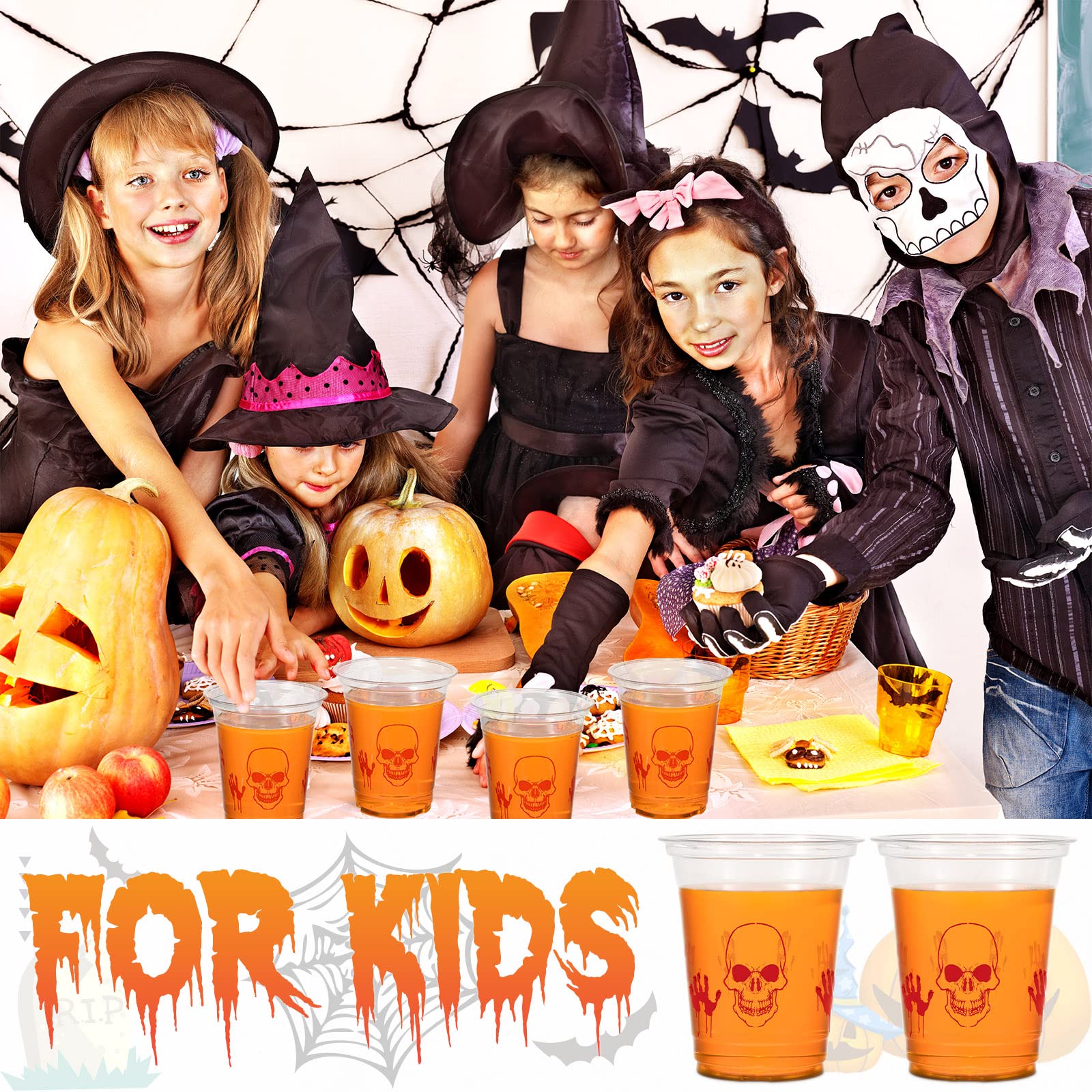 CHENGU 12 Oz Halloween Plastic Party Cups Halloween Clear Disposable Cups Skinny Skull Bloody Hand Halloween Cups for Drinks Jui