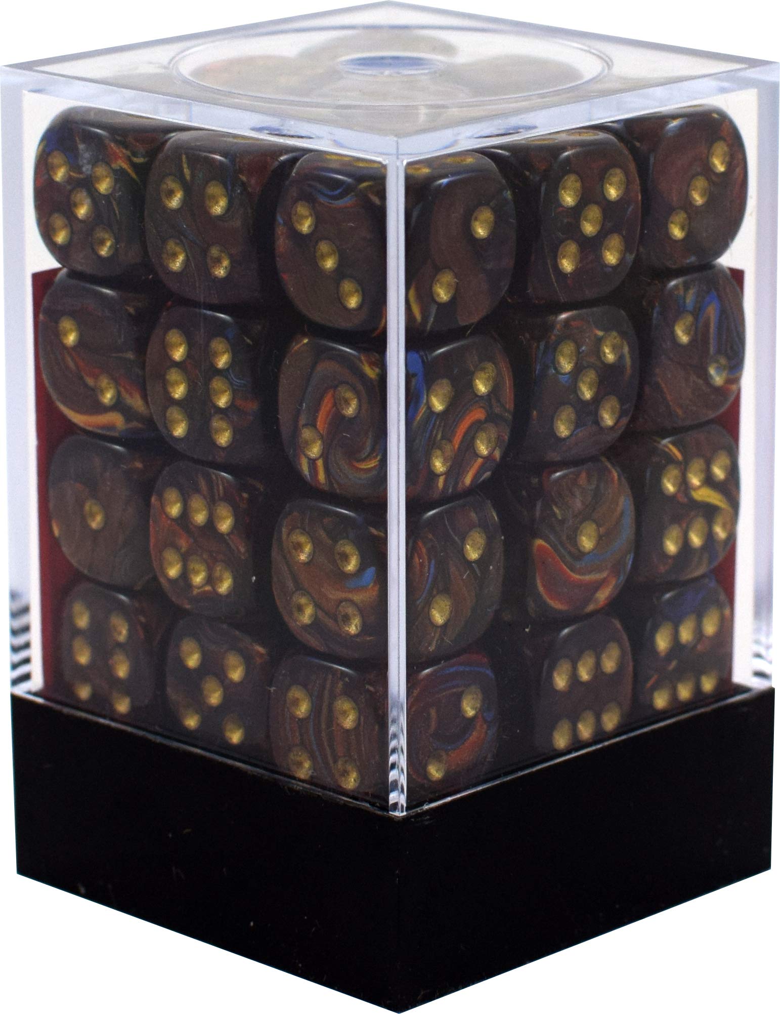 Chessex Scarab 12mm d6 Blue Blood w/Gold Dice Block 36 Dice - 27819