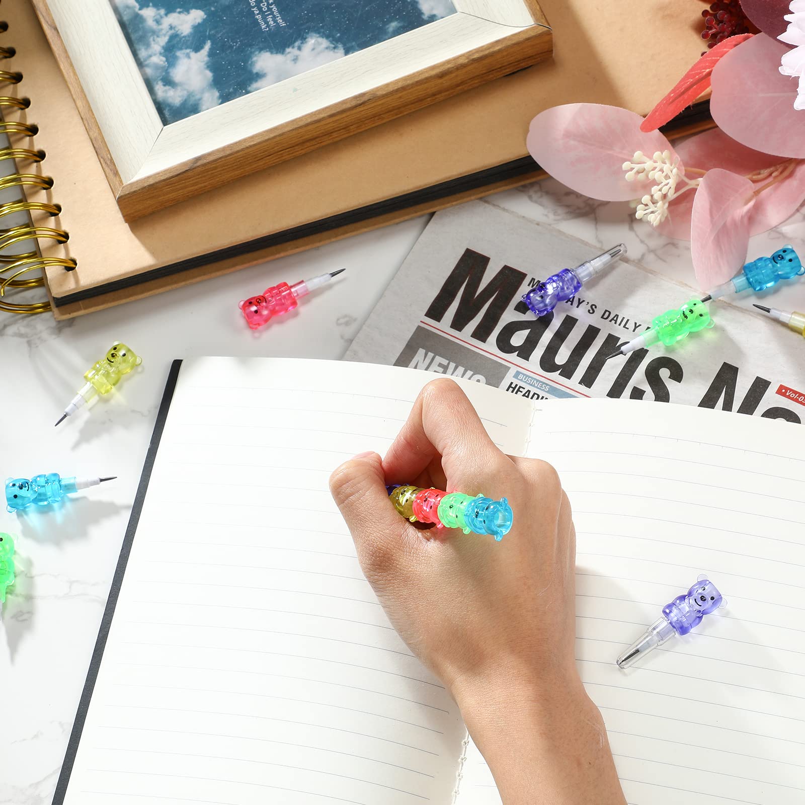 Chinco 50 Pieces Stackable Plastic Bear Pencils Stacking Point Pencils 5 in 1 Colored Party Favors for Birthday Party Supplies G