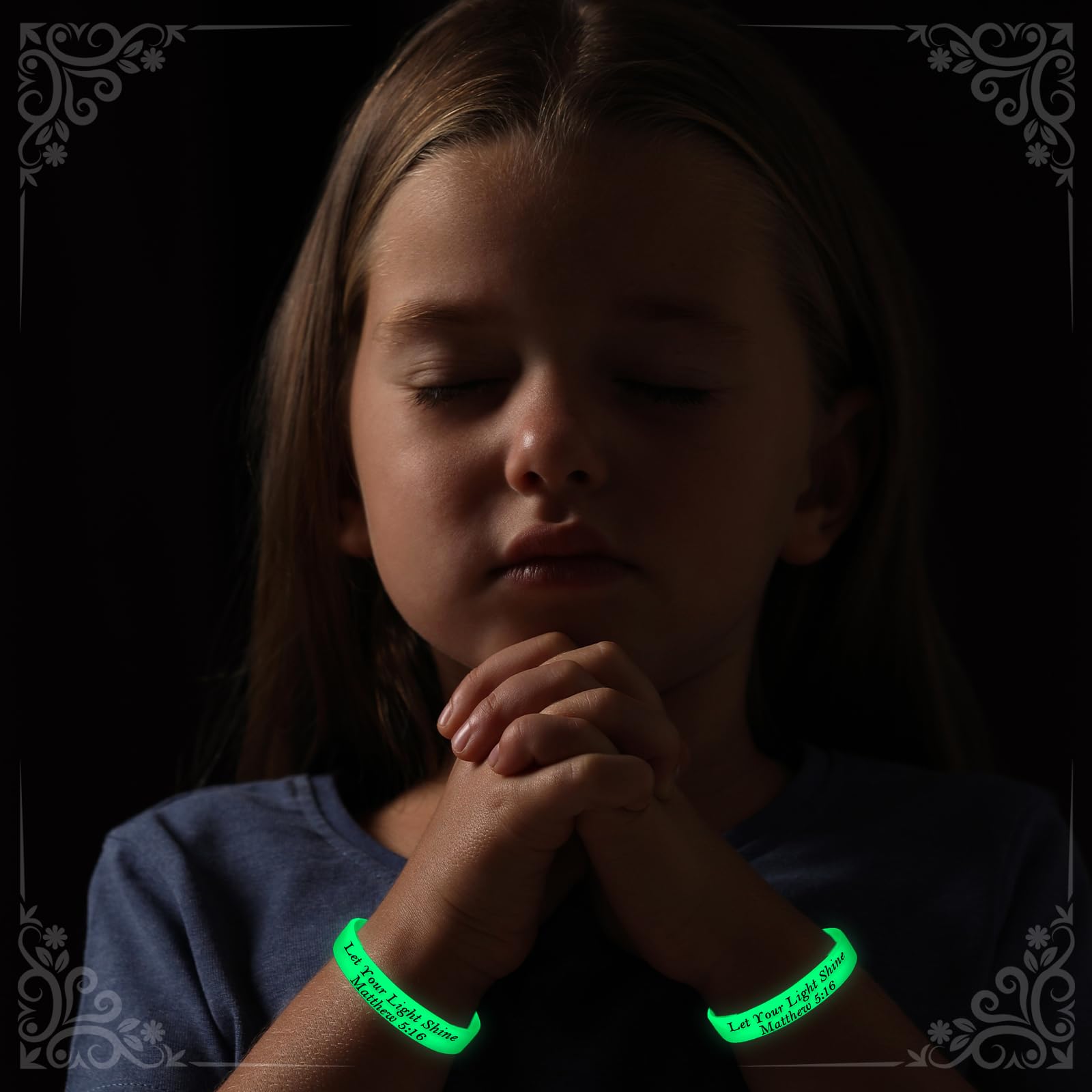 Chitidr 100 Pcs 8'' Christian Bracelets Let Your Light Shine Matthew 5: 16 Bible Verse Christian Wristbands Glow in the Dark Sil