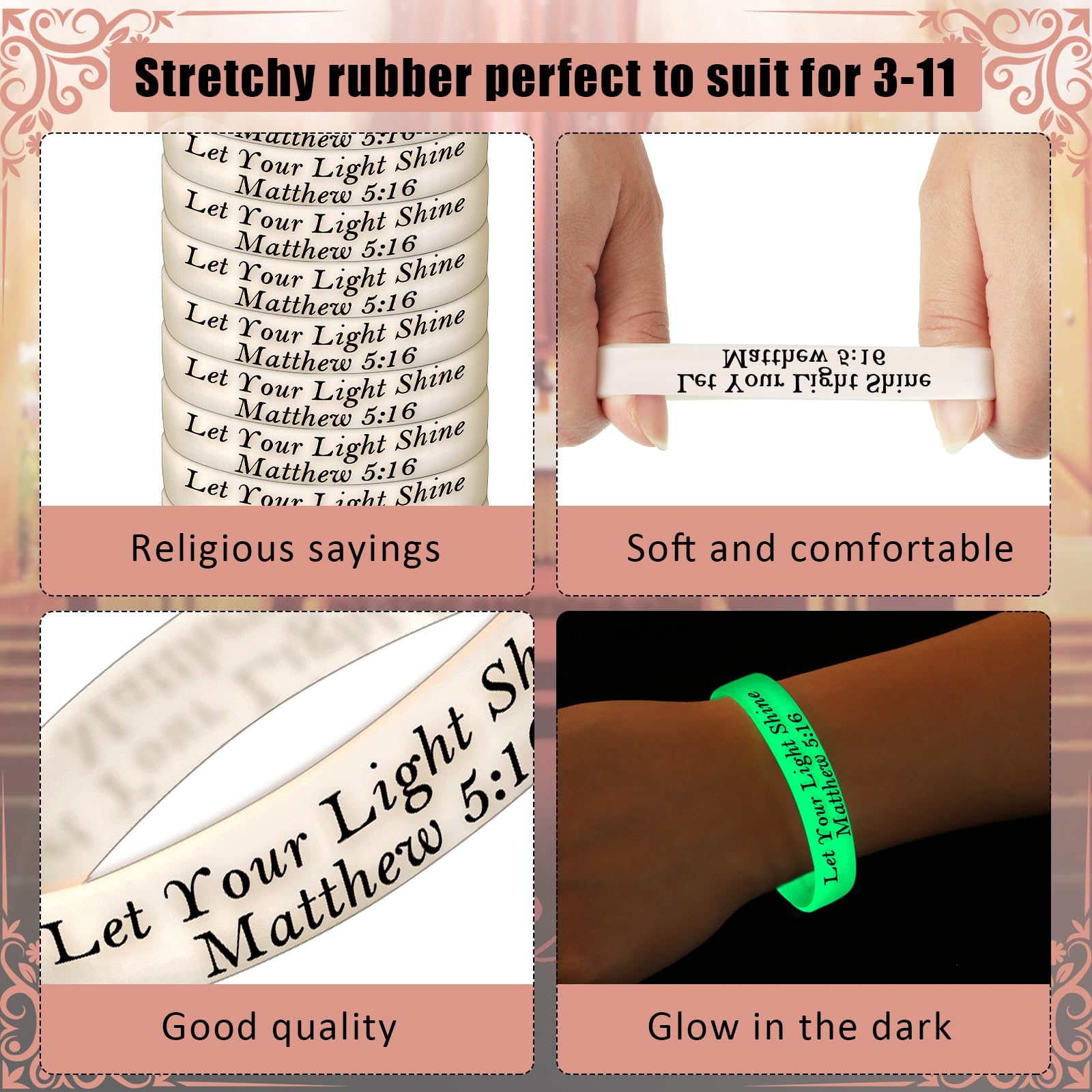 View compareChitidr 100 Pcs 8'' Christian Bracelets Let Your Light Shine Matthew 5: 16 Bible Verse Christian Wristbands Glow in the Dark Sil